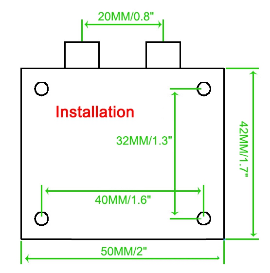 - Hole spacing: 40 x 32mm/1.6 x 1.3"