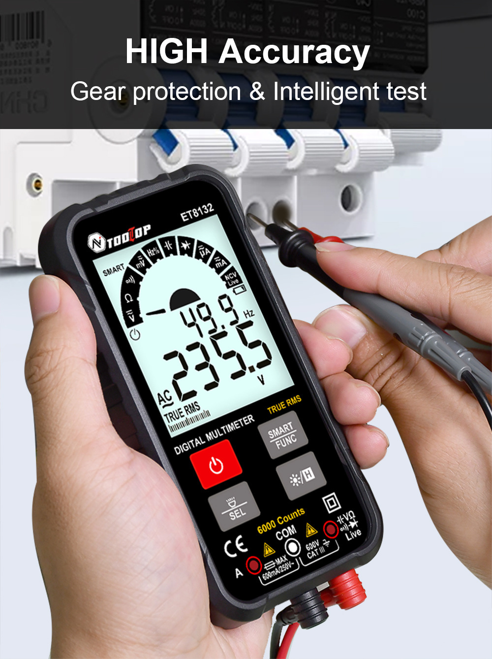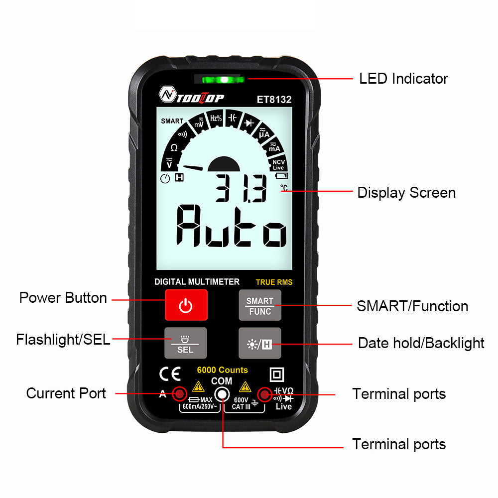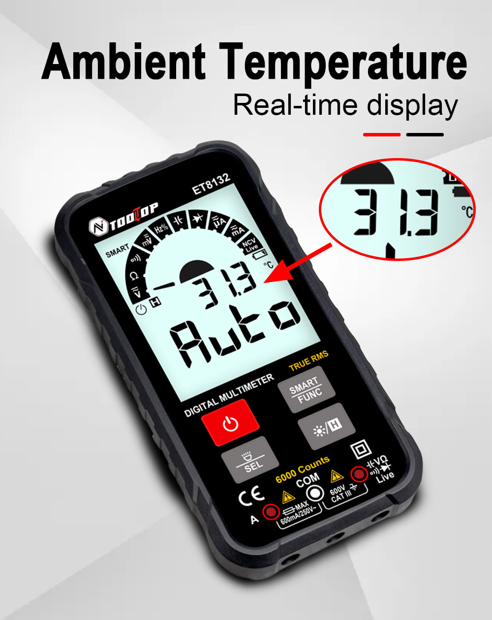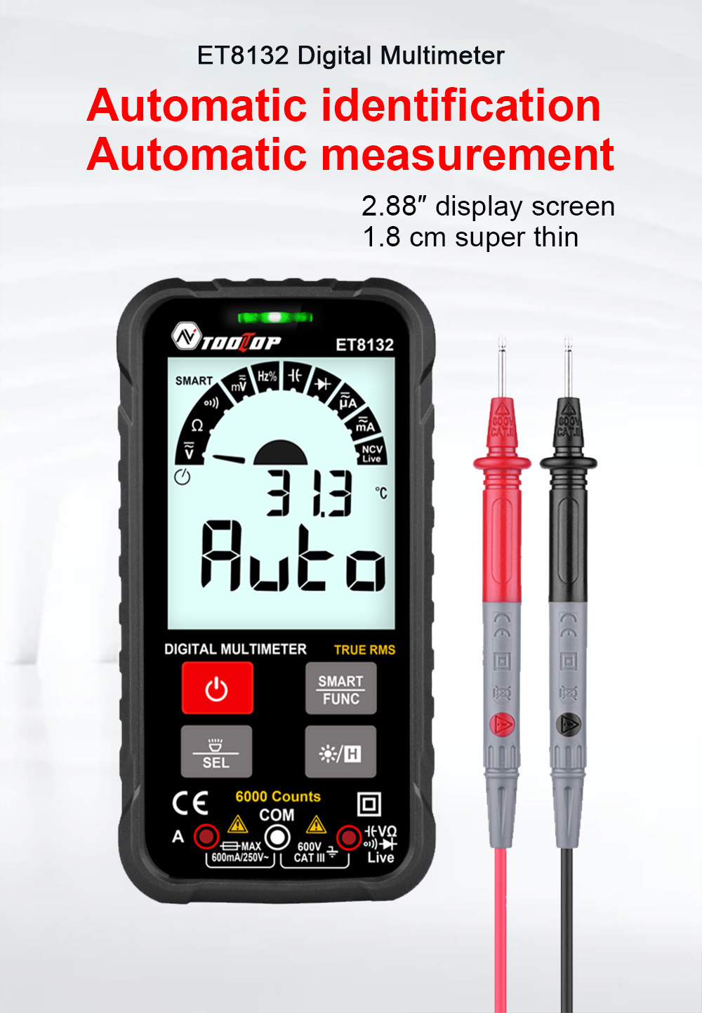 ET8132 600V 600mA Mini Multimeter 6000 Counts Digital Multimeter for NCV & Live Wire Detection