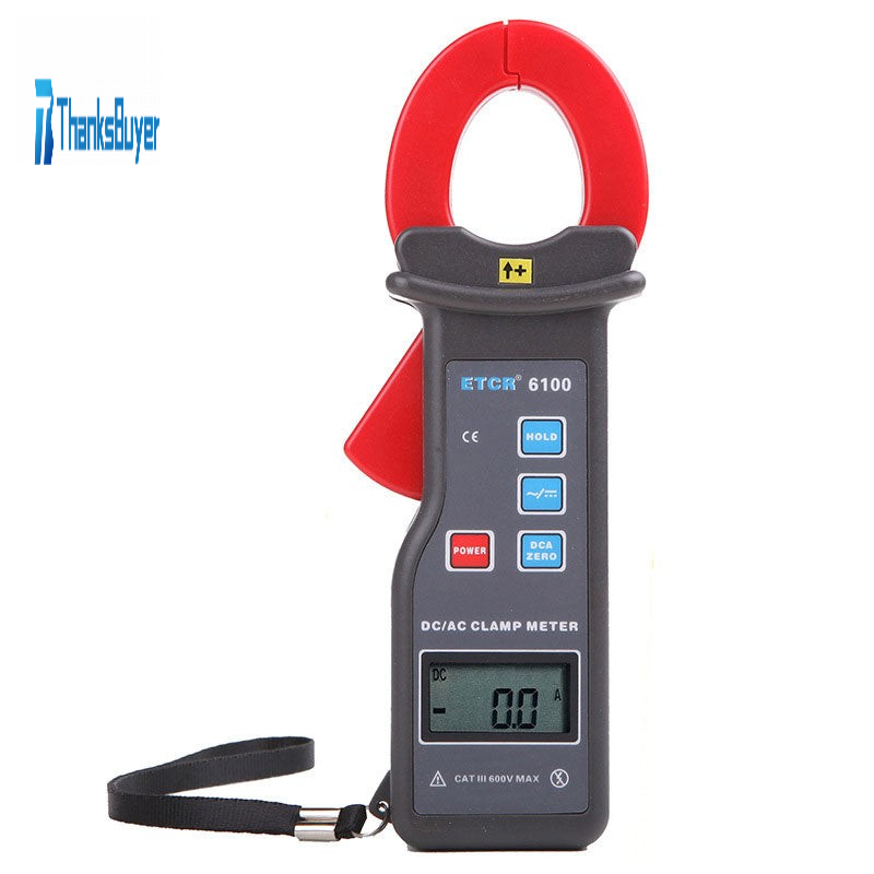 - ETCR6100 AC/DC Clamp Current Meter suitable for measuring AC, DC leakage current below 600V, range: AC/DC 0.0A~1000A, CT size: 30mmx35mm, especially suitable for places with dense flat cable (power metering system, high-speed rail system, automobile circuit maintenance, etc.). Non-contact current measurement, safe and simple operation.The instrument is small size, high accuracy, performance stable and function perfect, which is one of the necessary tools for electrician safety inspection and maintenance.