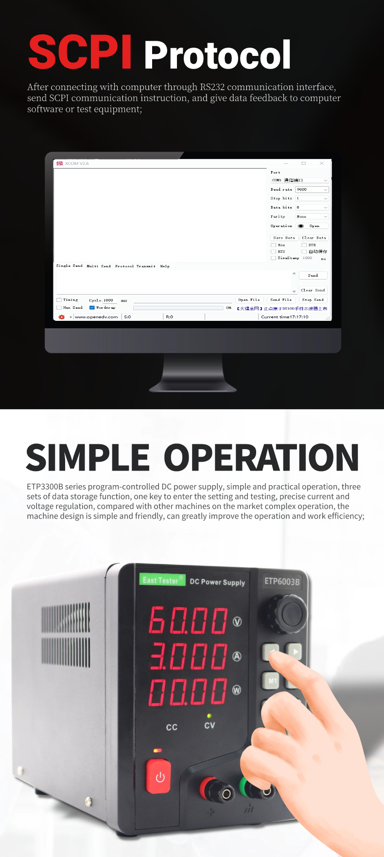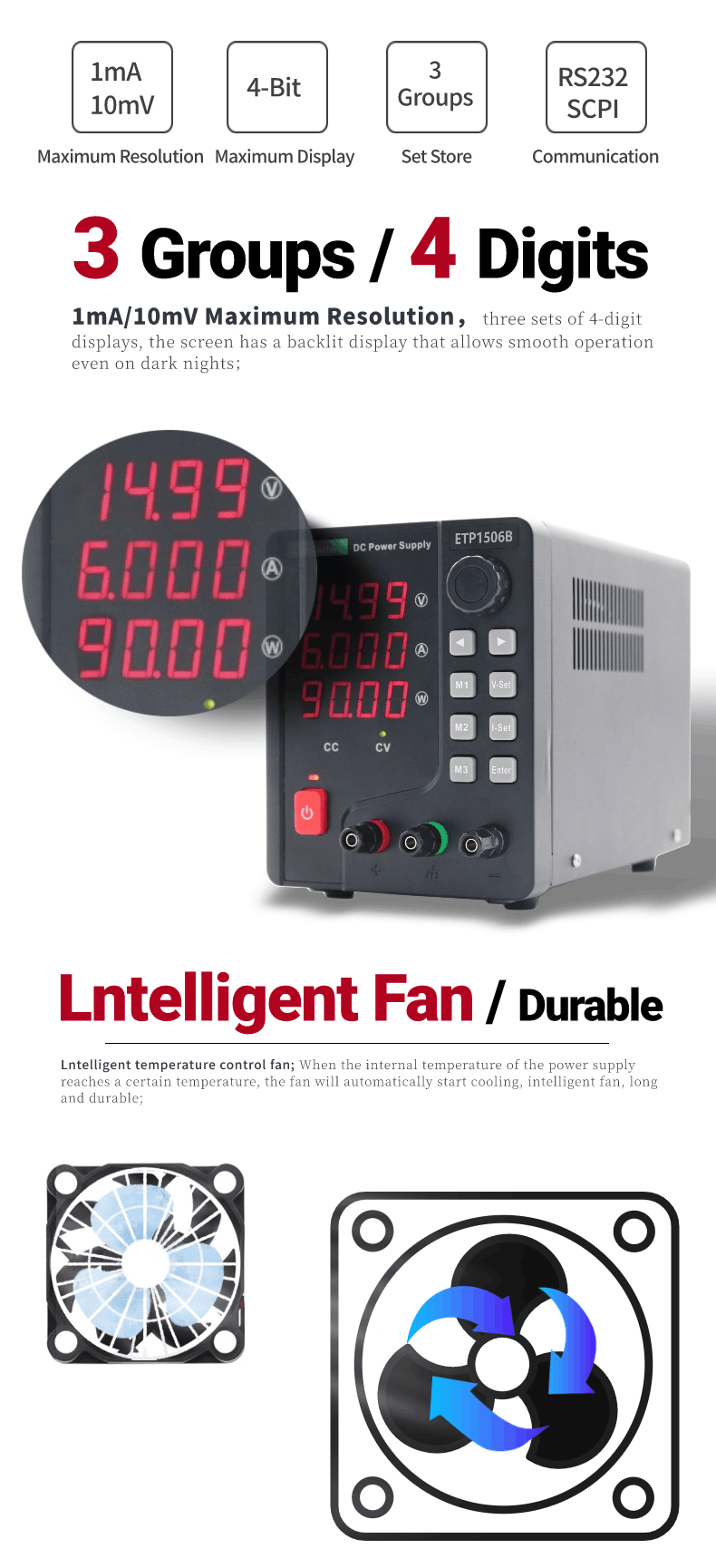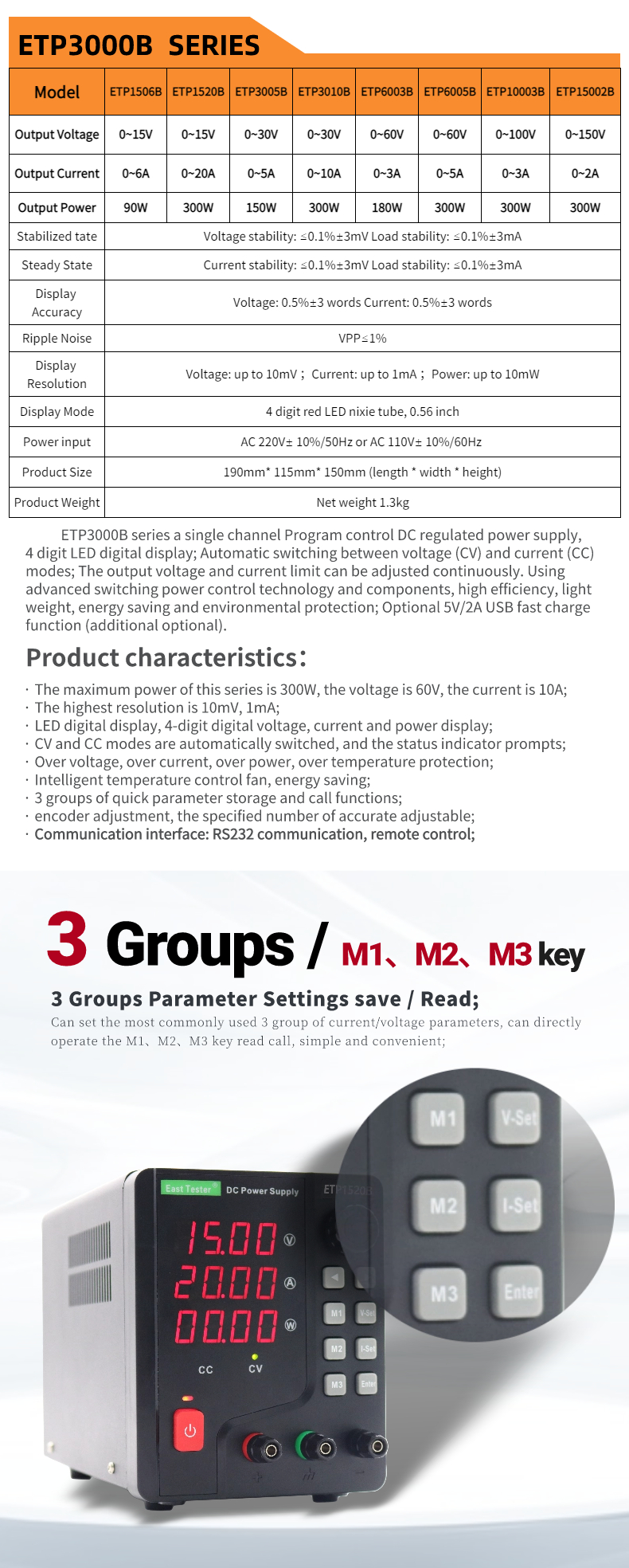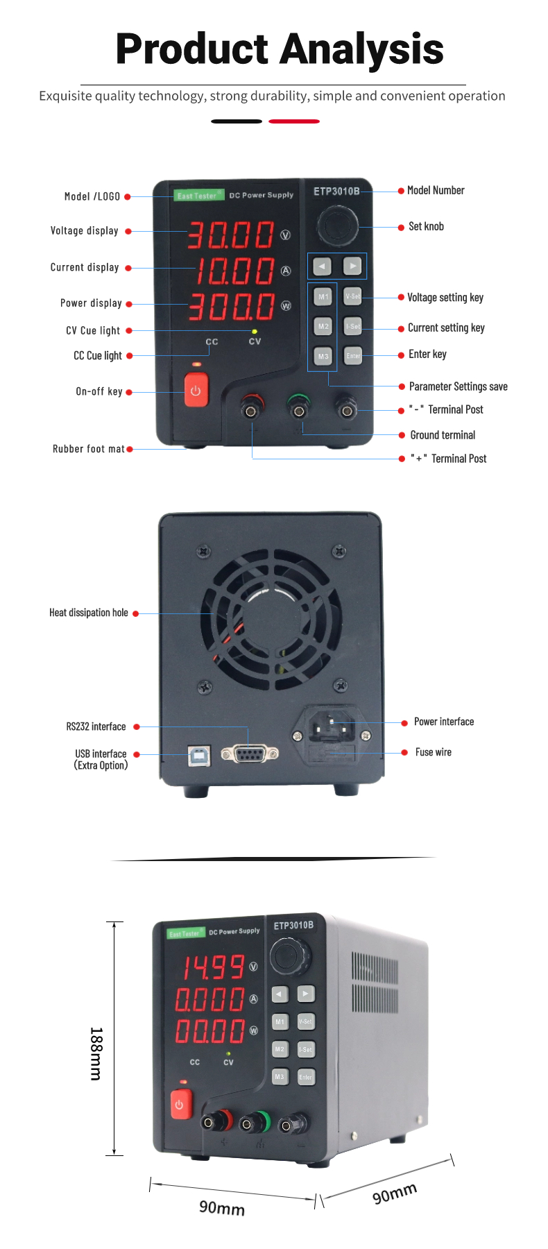 ETP10003B 0-100V 300W Single Channel DC Regulated Power Supply 4-digit LED Digital Display for CC/CV Automatic Test