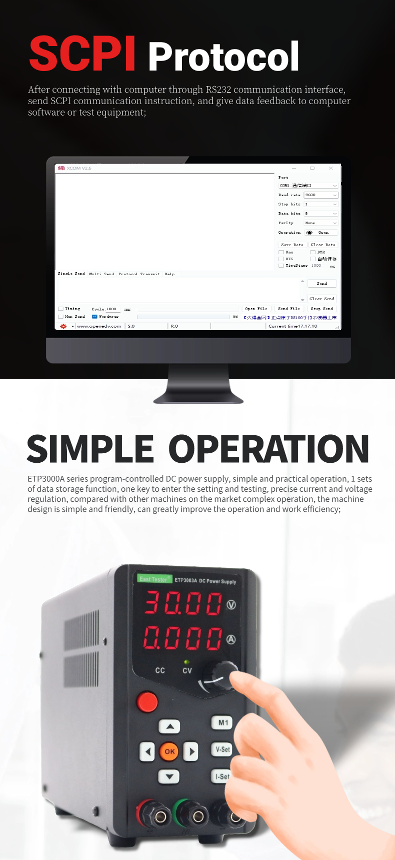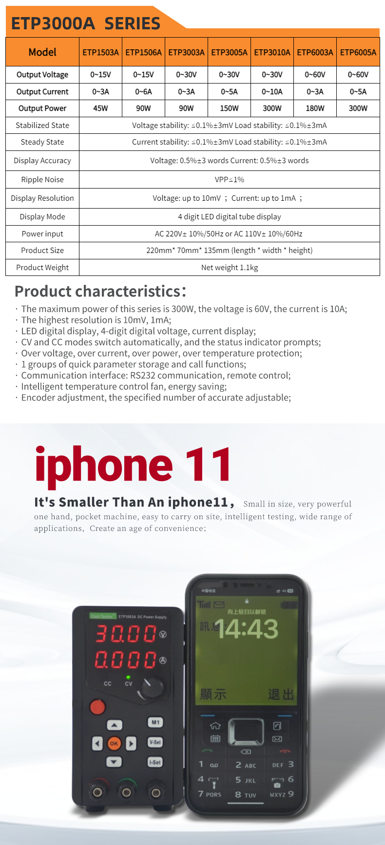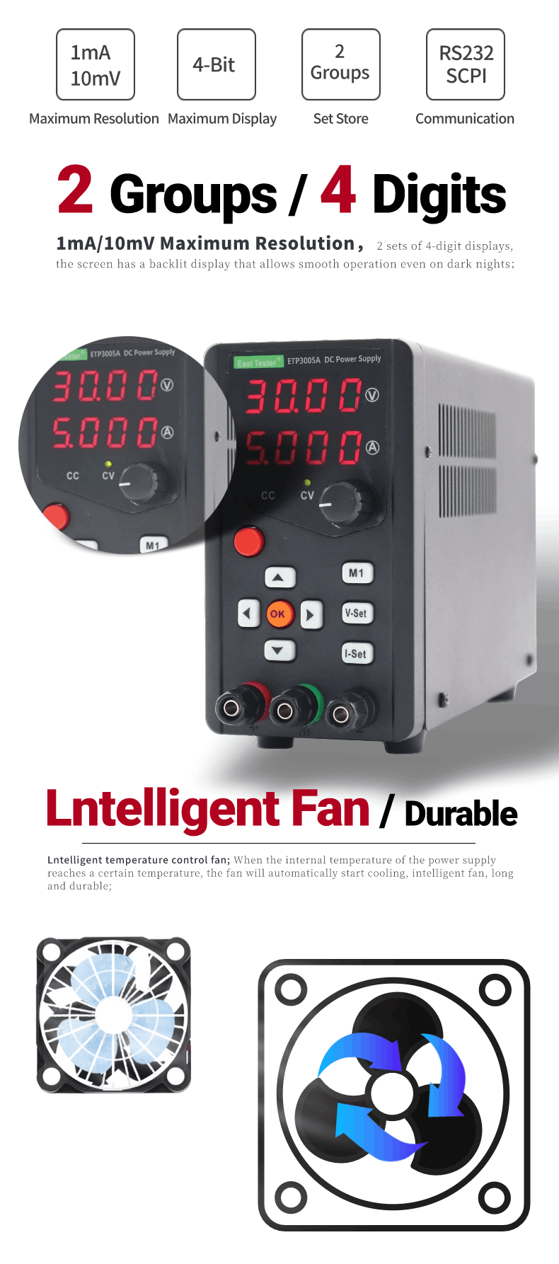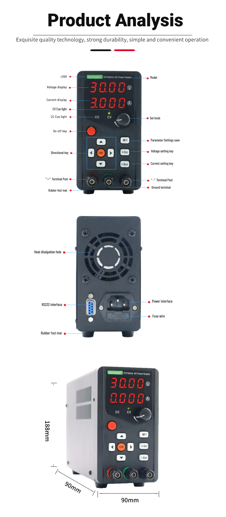 ETP3010A 0-30V 300W Single Channel Adjustable DC Regulated Power Supply LED Digital Display for CC/CV Automatic Test