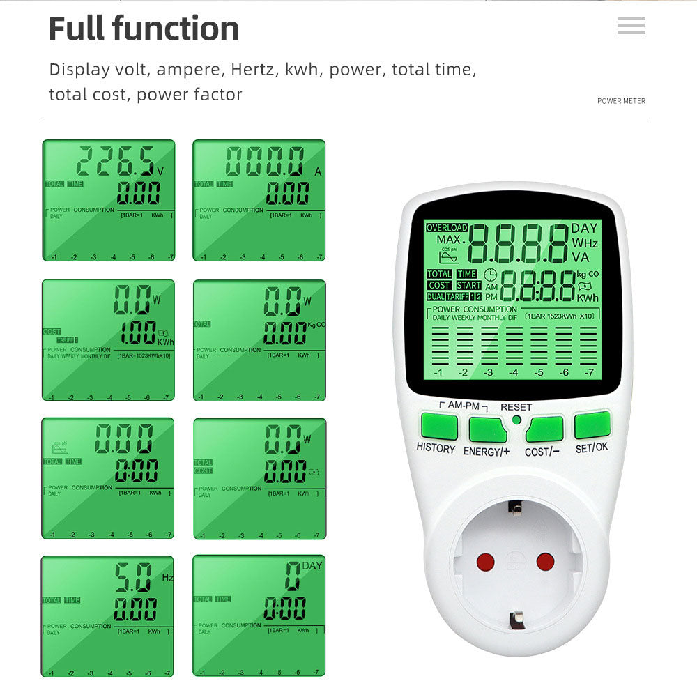 Euro-Standard Backlight Power Meter Multifunctional Power Meter Analyzer with LCD Display