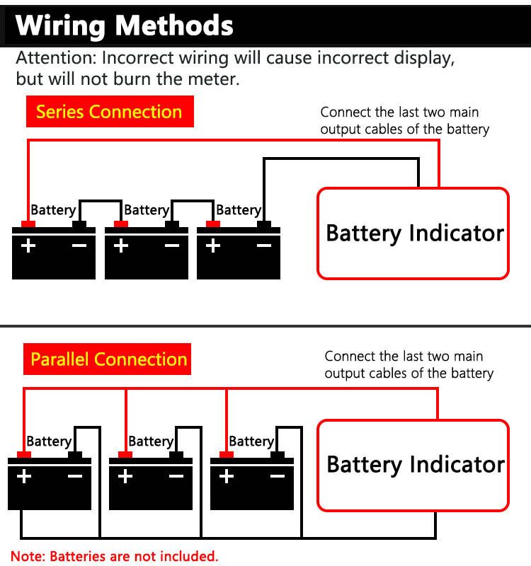- It is not recommended to use a voltage-type battery indicator for lithium iron phosphate batteries. It is recommended to buy a current-type battery indicator from our store.