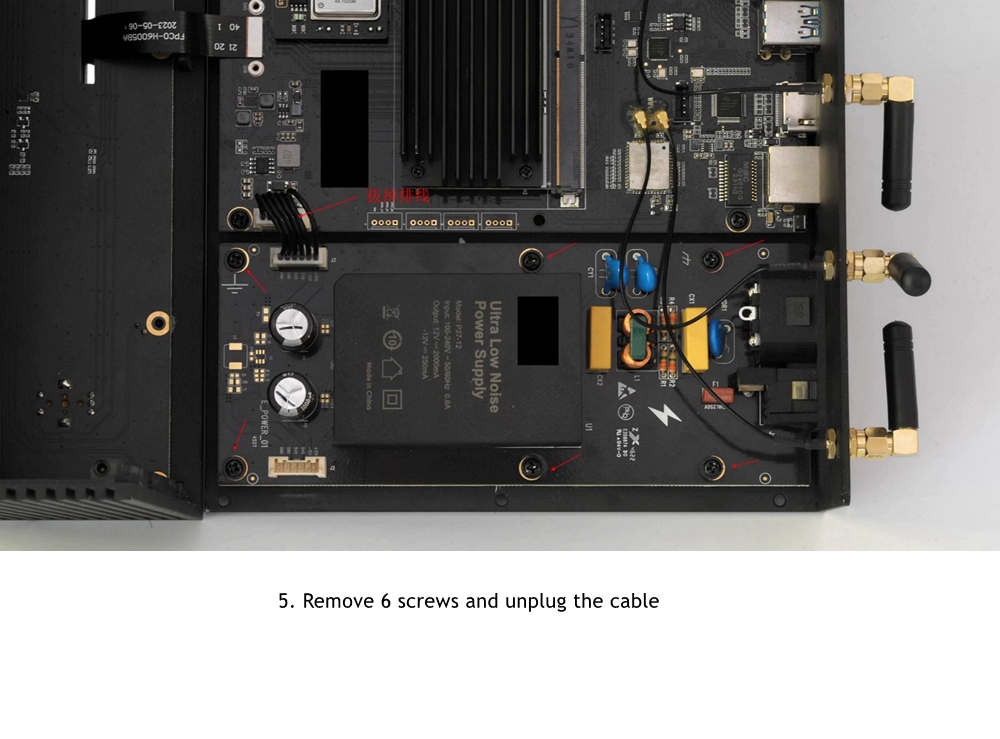 3. Use the original screws and cables, and only four screws need to be installed for this power supply.