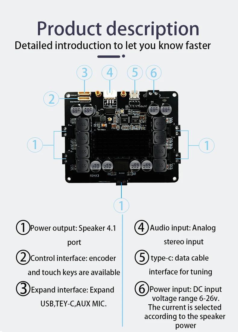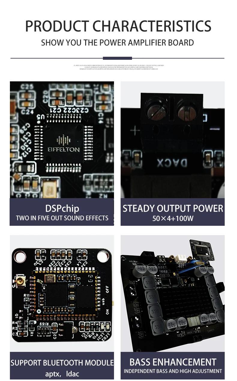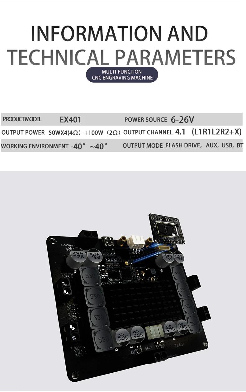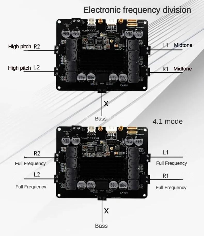 EX401 4.1DSP Bluetooth Power Amplifier Board TPA3116 High Power 2 IN 5 OUT 25Wx4+50W Amplifier Module