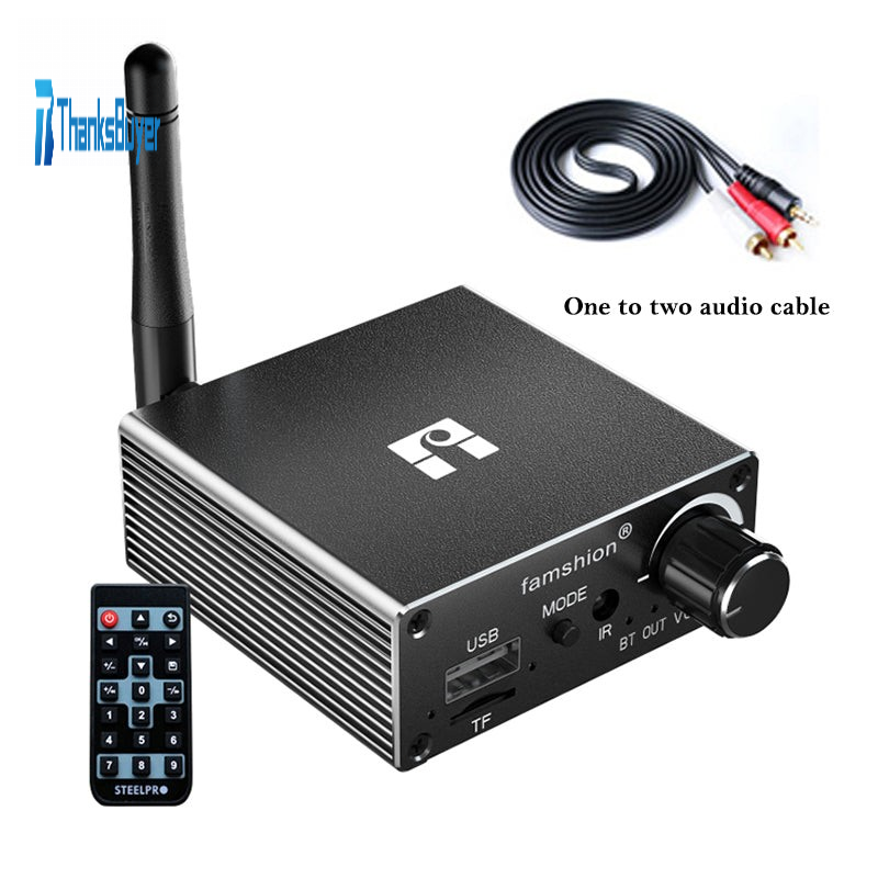 Famshion D18 Bluetooth Receiver 5.1 w/ 1 to 2 Audio Cable Remote Control for Old Speakers Power Amp