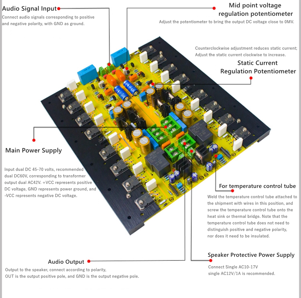 - The board is equipped with a complete horn protection circuit, making installation easier. Including midpoint voltage offset, overcurrent detection, on/off mute, and over temperature protection.