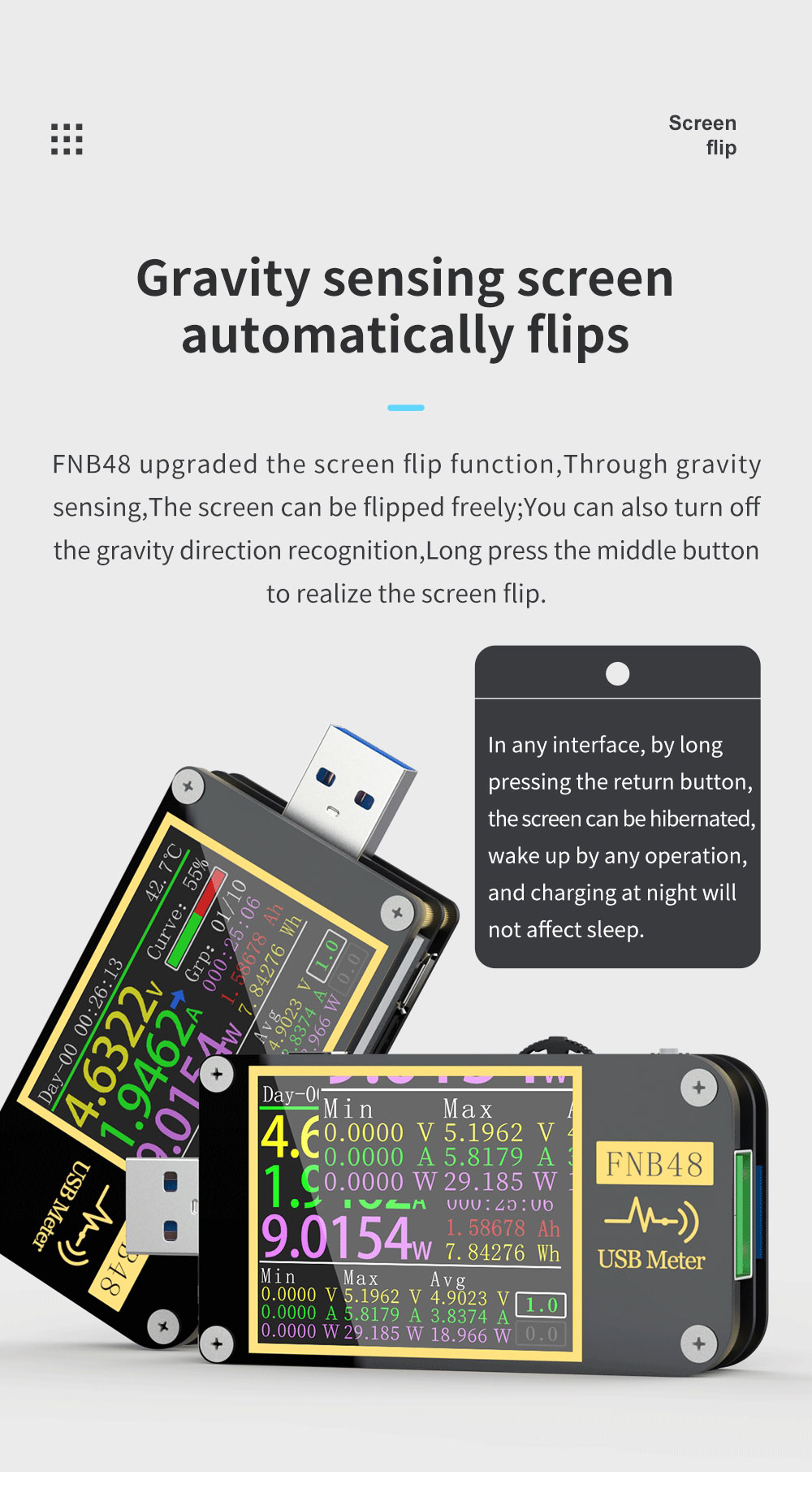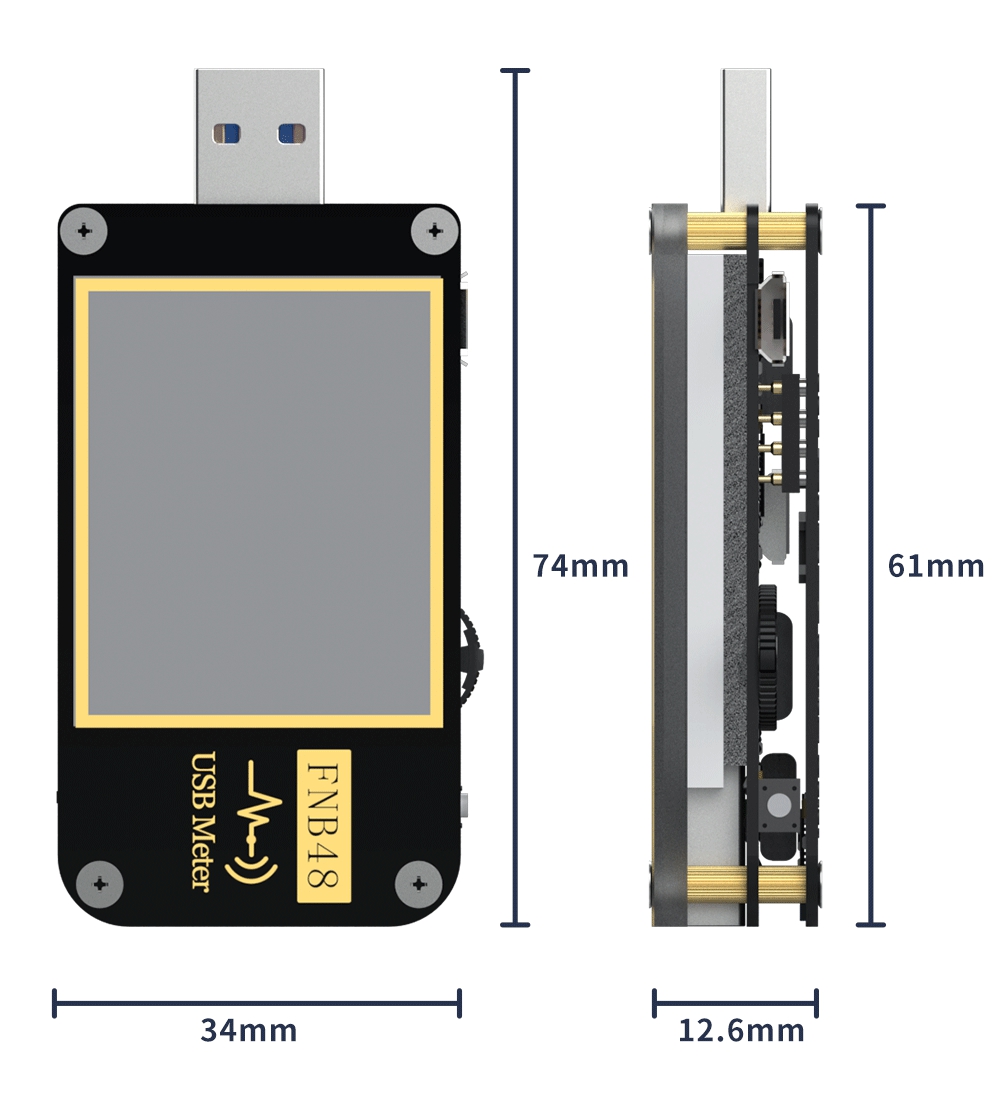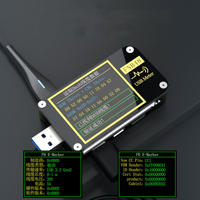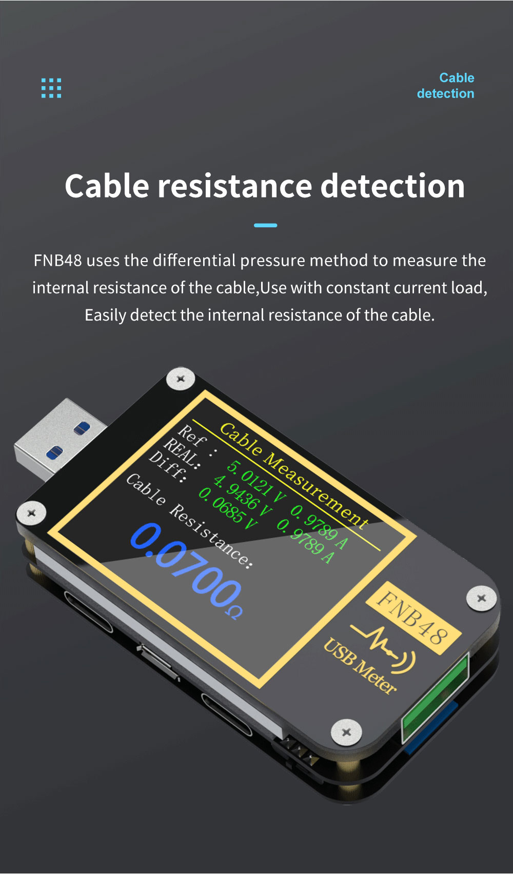 FNB48 With Bluetooth USB Meter Voltage Meter USB Current Tester 6-Digit Display For QC PD Protocols
