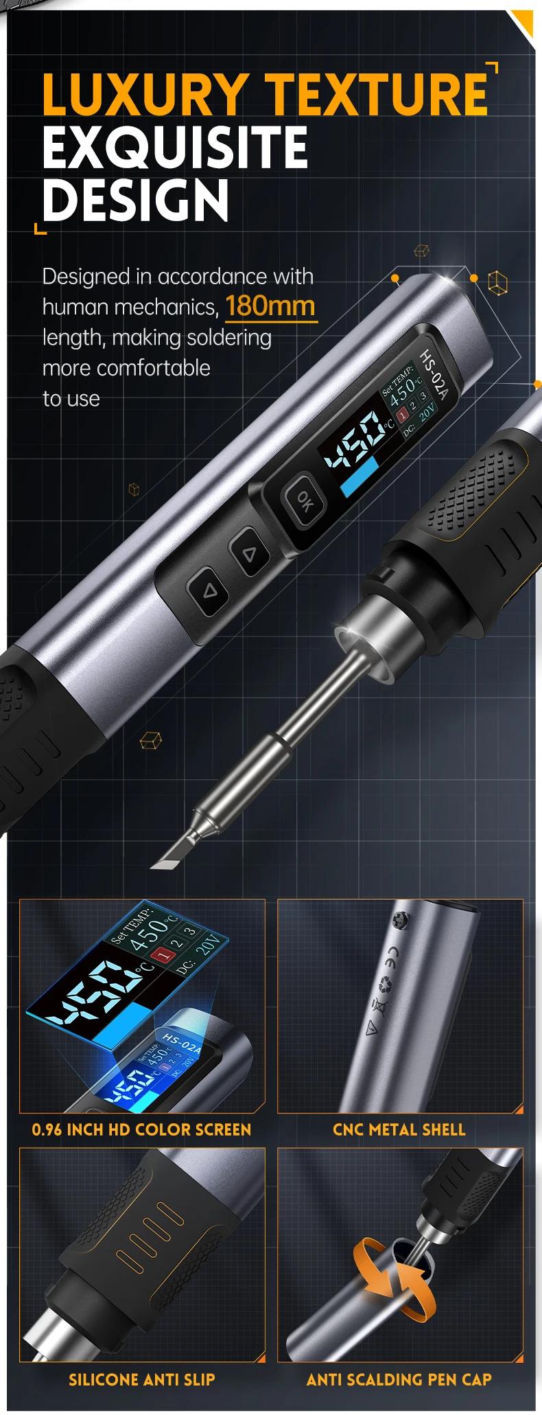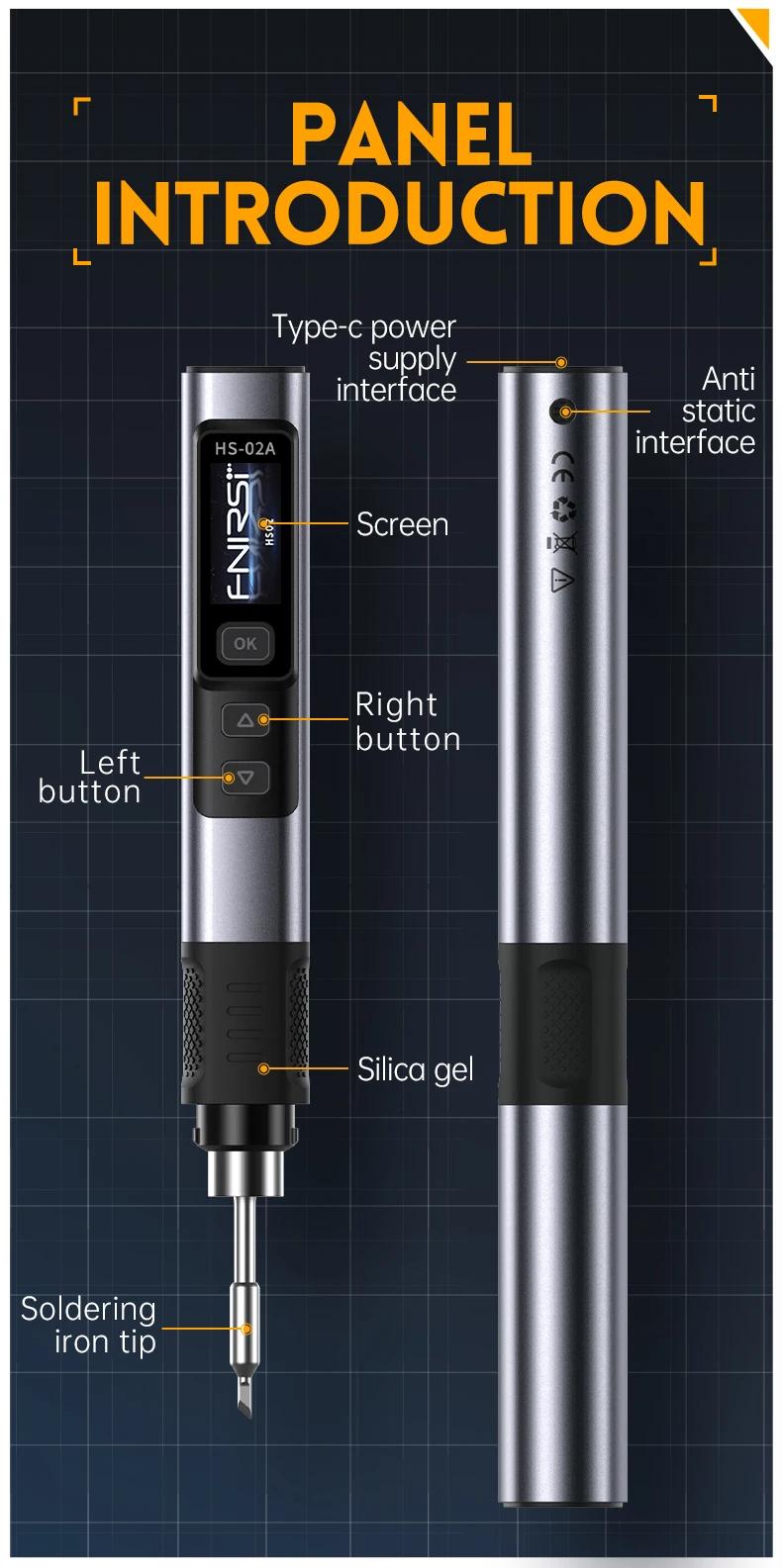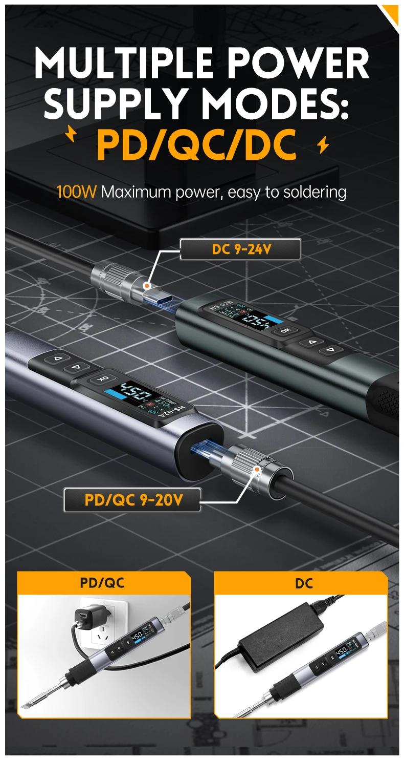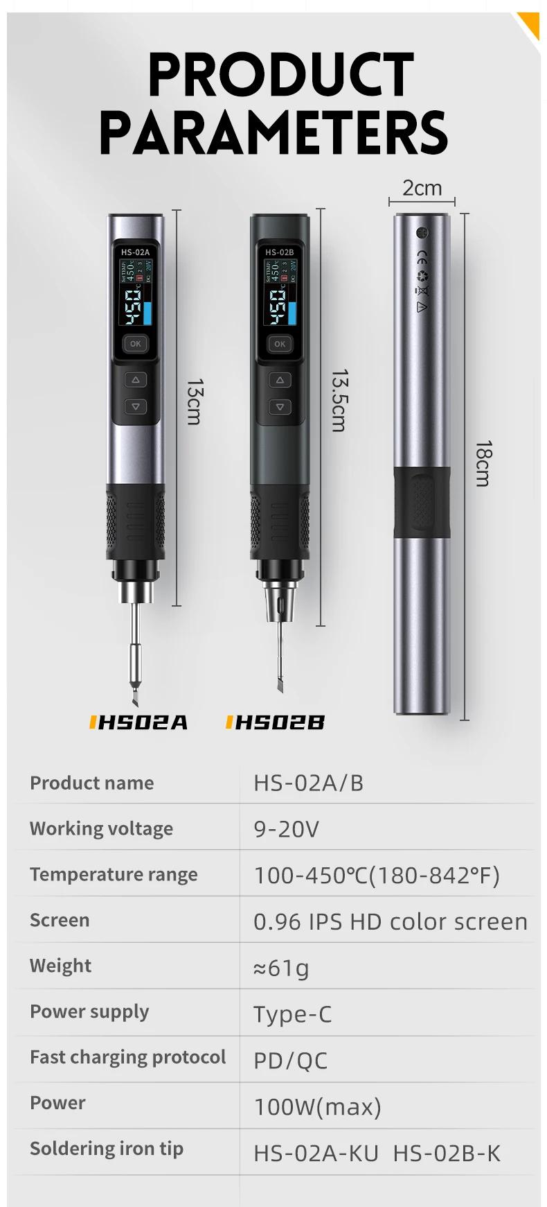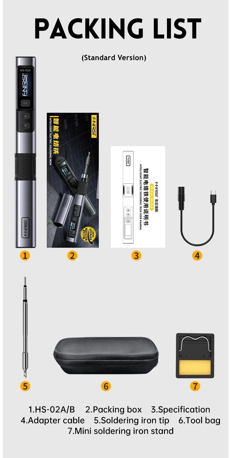 FNIRSI 6.6cm HS-02B Advanced Version Smart Soldering Iron 100W Portable Soldering Pen + C2C Cable + 100W Power Adapter