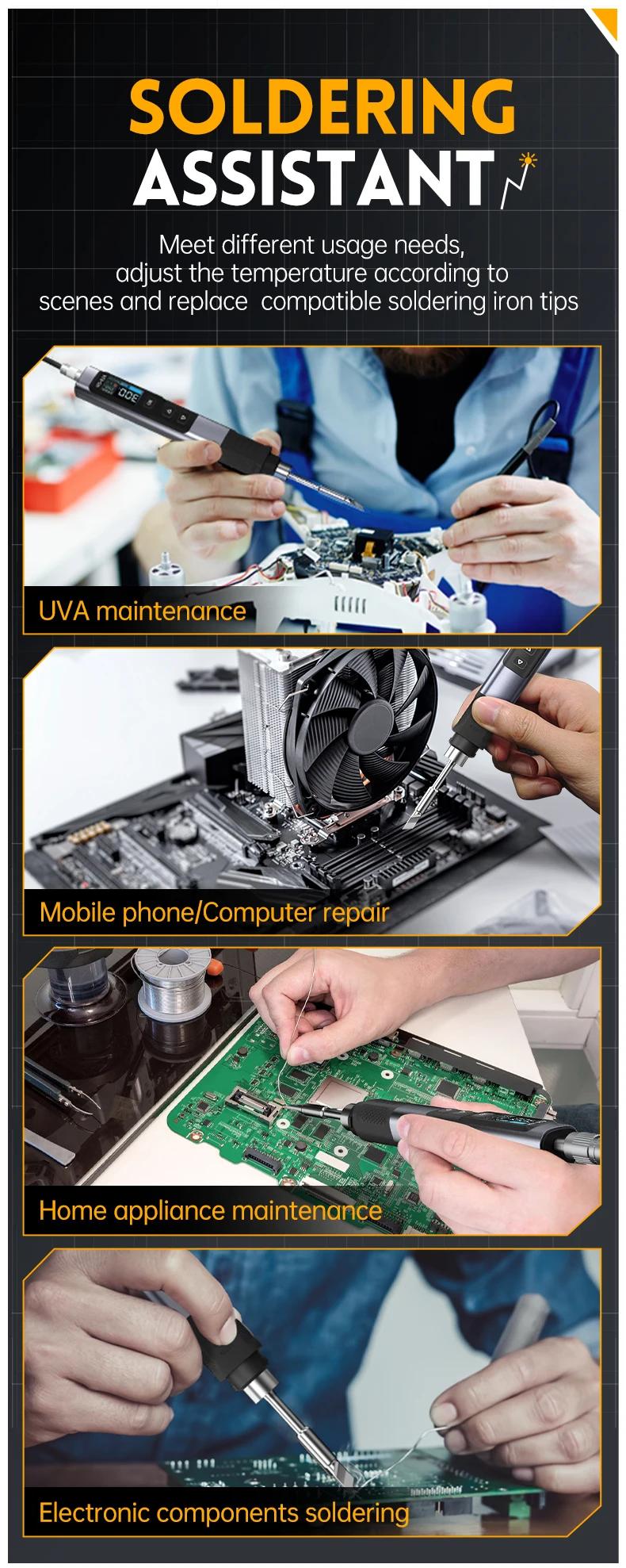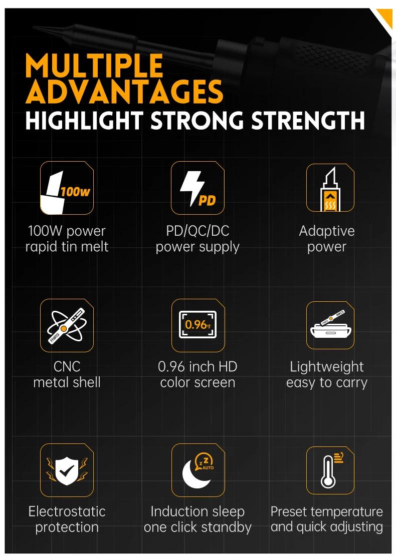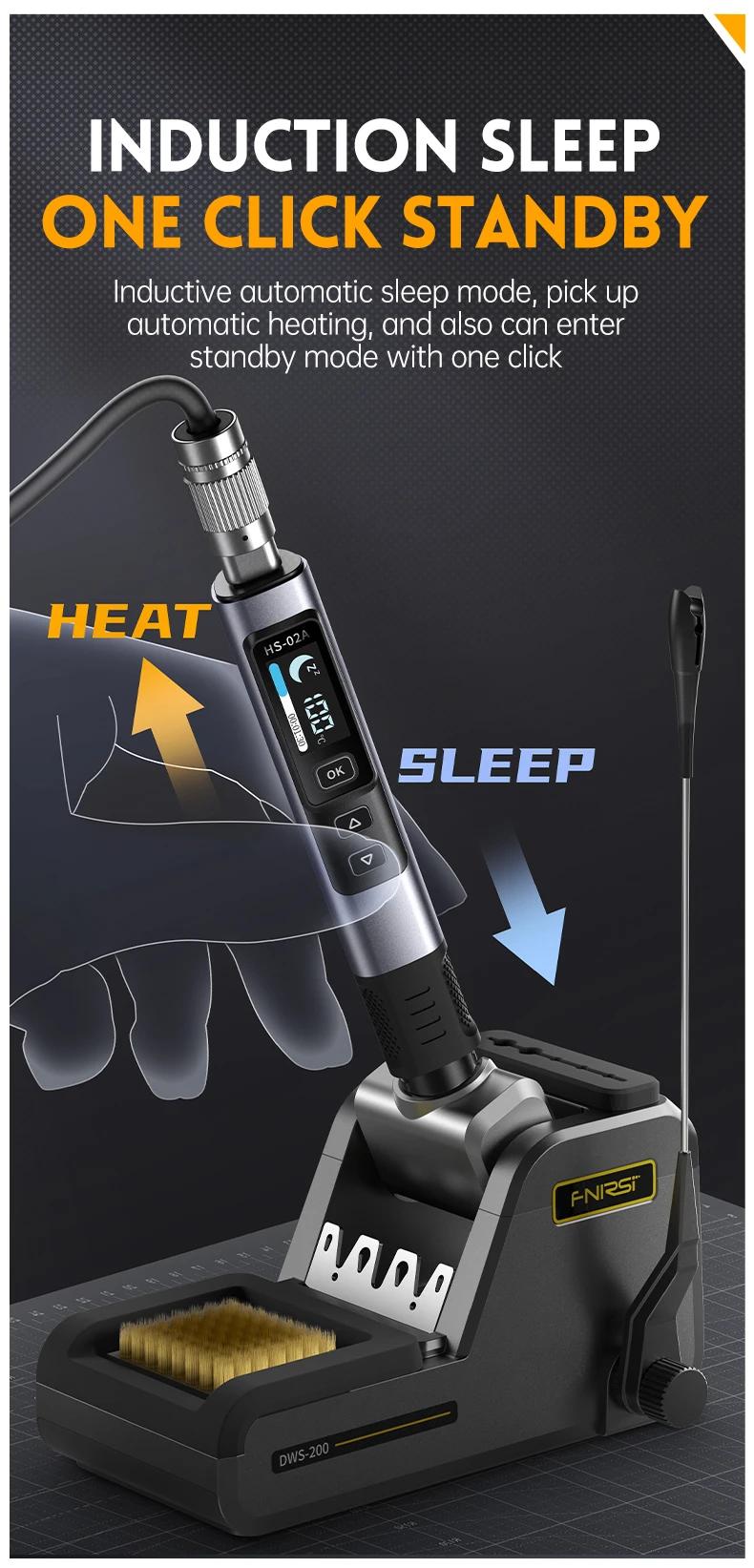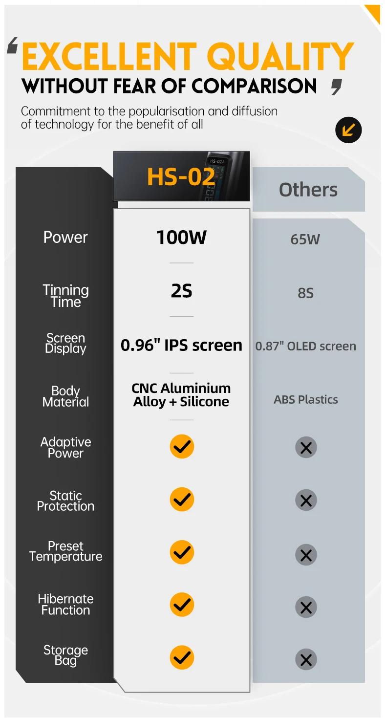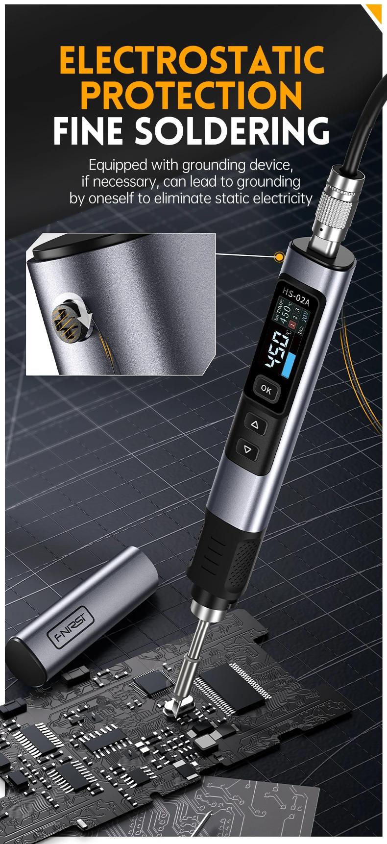 FNIRSI 6.6cm HS-02B Advanced Version Smart Soldering Iron 100W Portable Soldering Pen + C2C Cable + 100W Power Adapter