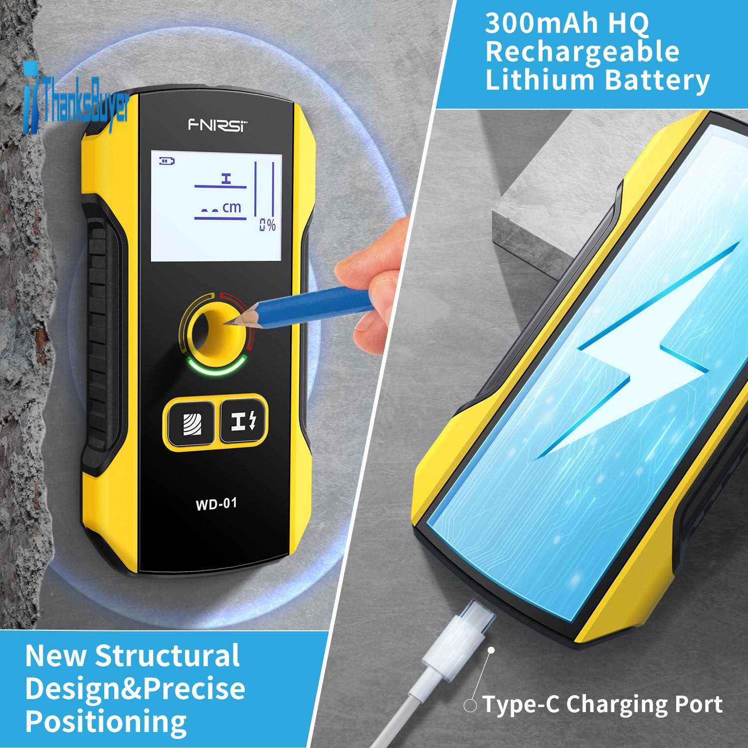 FNIRSI WD-01 Wall Detector Wall Scanner for Metal Electrical Wire and Wood Detection