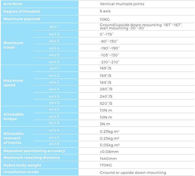 - Highly compact design: load 10KG, arm span 1.4m, flexible choice of bottom installation or upside-down installation