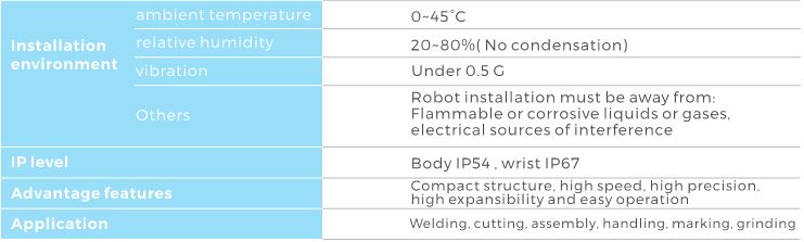 - With large working space and fast running speed, it is suitable for welding, spraying,loading and unloading, handling, sorting, assembling and other applications.