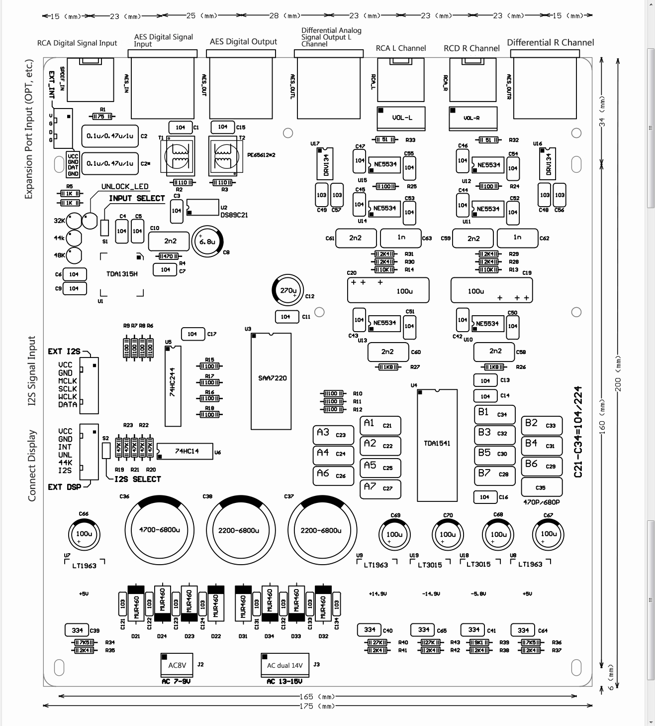 2) This is a semi-finished decoder board and does not include SAA 7220 and TDA1541.