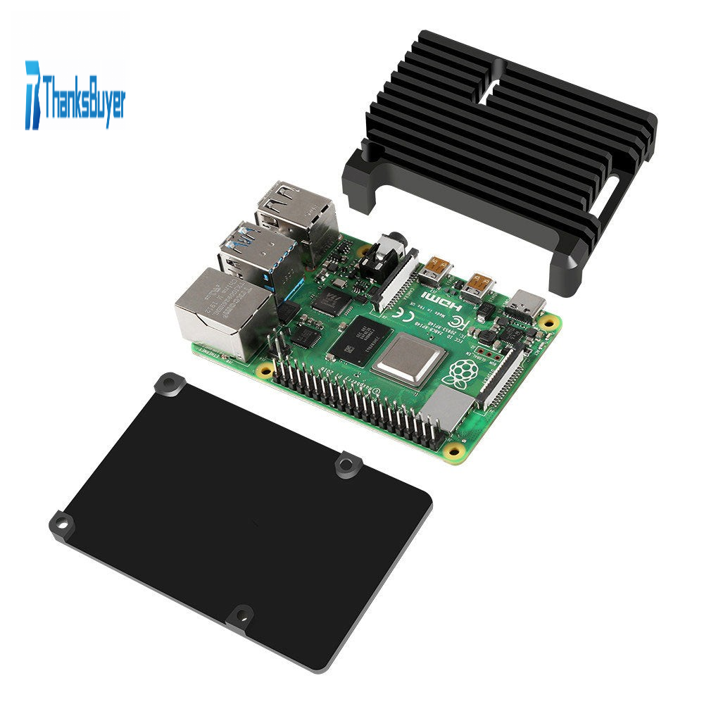 For Raspberry Pi 4B Case Raspberry Pi 4 Heatsink Case Shell Kit Aluminum Alloy Black Without Fan