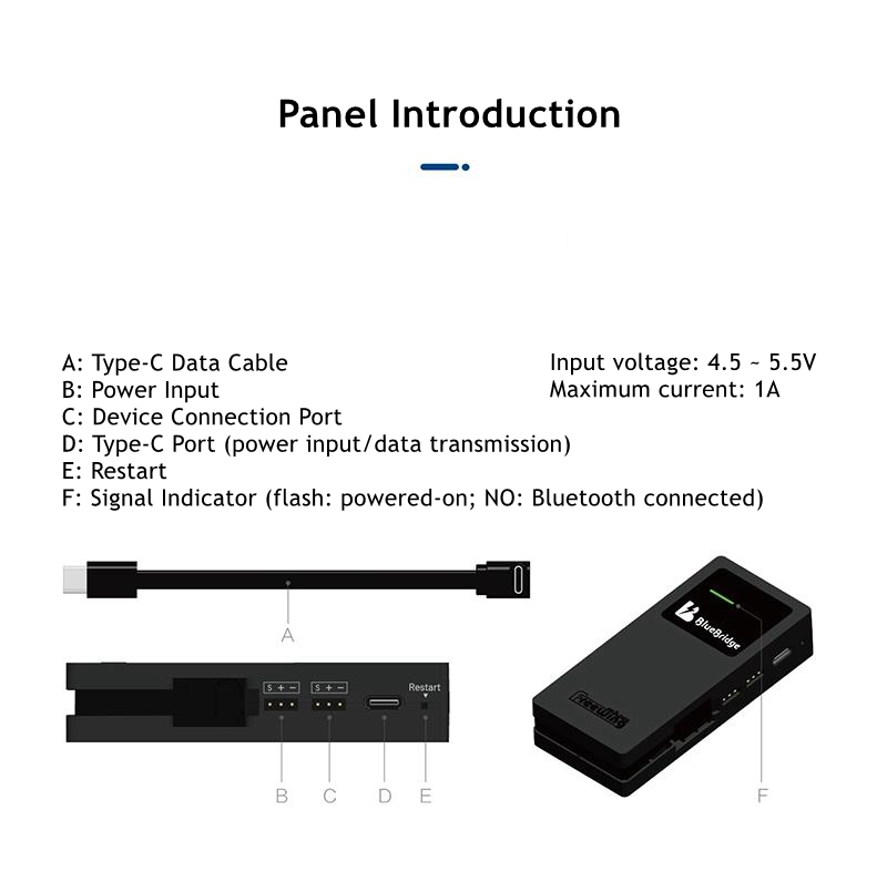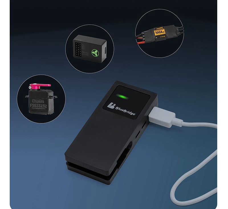 - Freewing BlueBridge is a dedicated relay device with a built-in Bluetooth communication module, which includes two of the most commonly used interfaces in the field of model aircraft. Through it, the connected devices can interact with the Flight Assistant APP for data exchange, achieving the purpose of setting, modifying device parameters, and upgrading devices online.