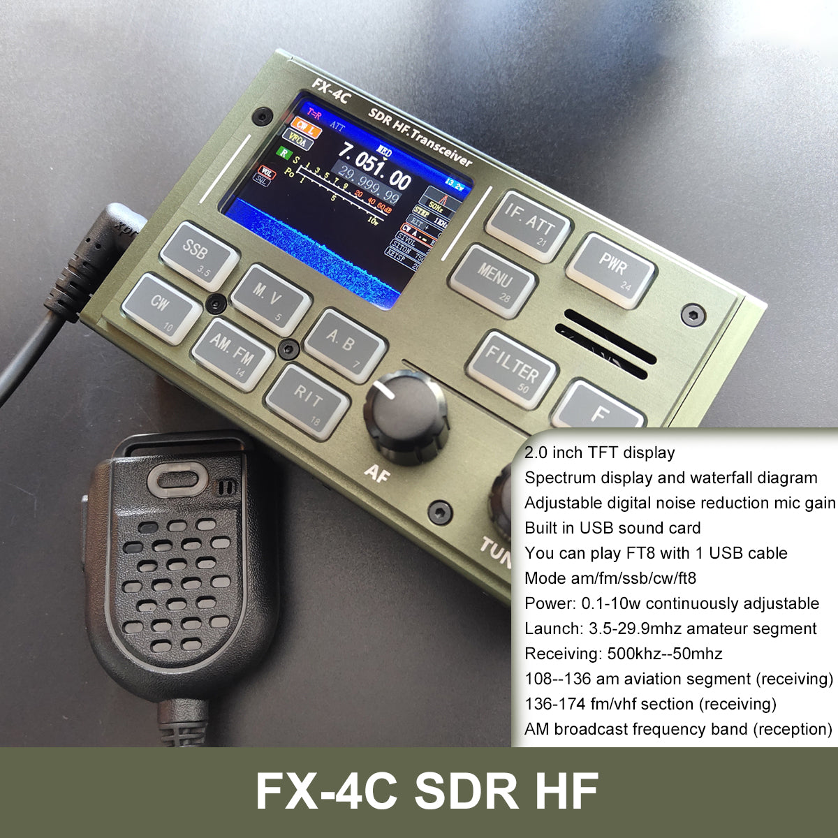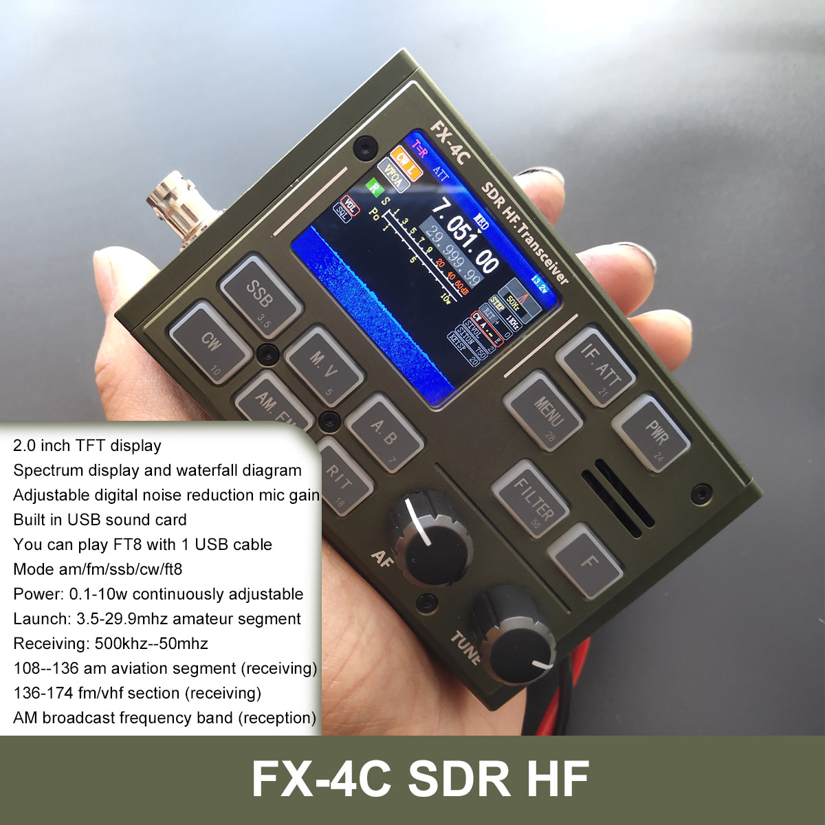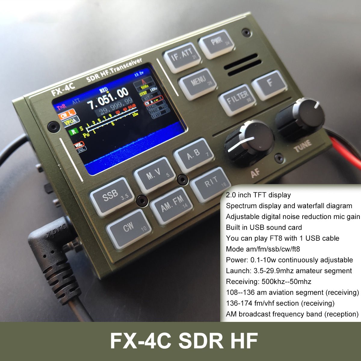 FX-4C SDR HF Transceiver 10W Portable Mobile Radio TX 3.5-29MHz RX 500KHz-174MHz with Safety Box