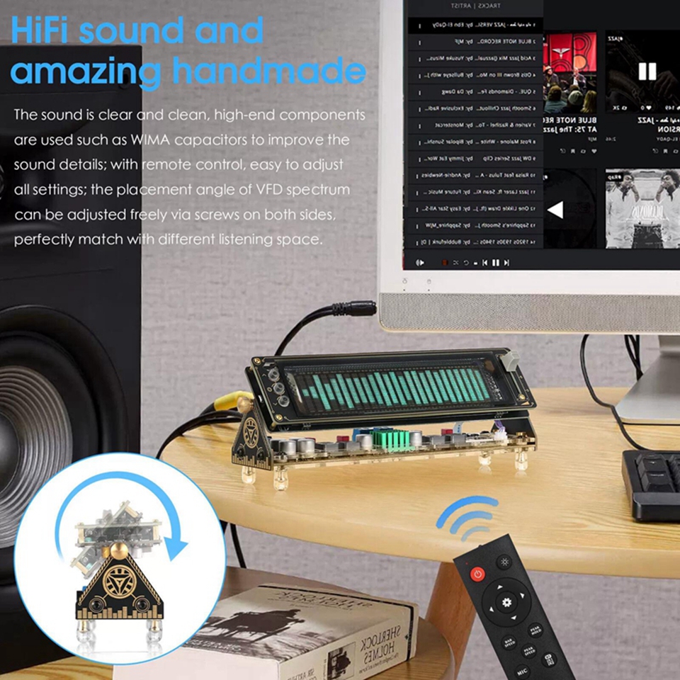 - Simple appearance and easy to use: with the remote control, you can easily adjust all settings and view the music level status and every subtle change in sound in real-time.