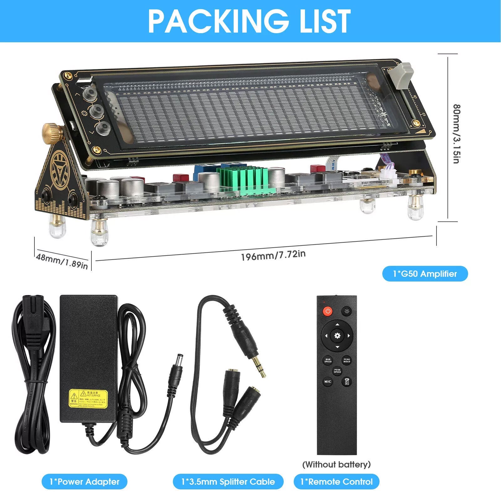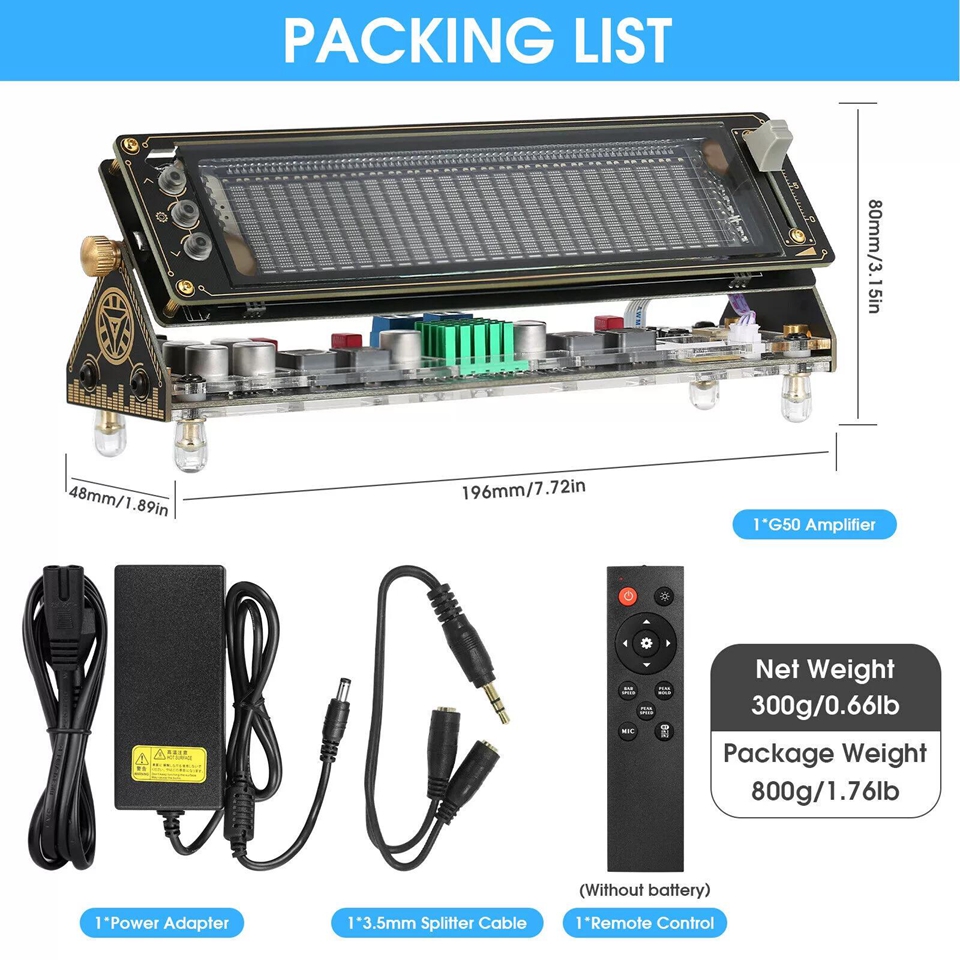 - Many adjustable items and display effects: gain, brightness, main beam descent speed, peak hold time, and descent speed can be individually adjusted. 5 music spectrum display modes and 2 clock display modes, all settings have power-off memory function, and there is no need to reset after restarting.