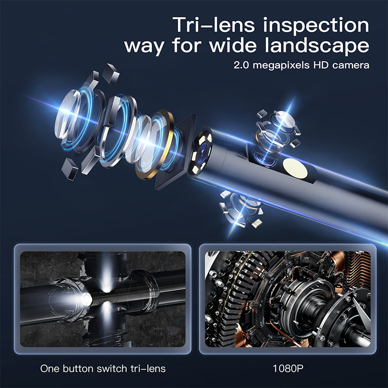 G5002-B 3-Lens Wifi Endoscope 2MP Borescope Industrial Inspection Camera with 5" Color Screen