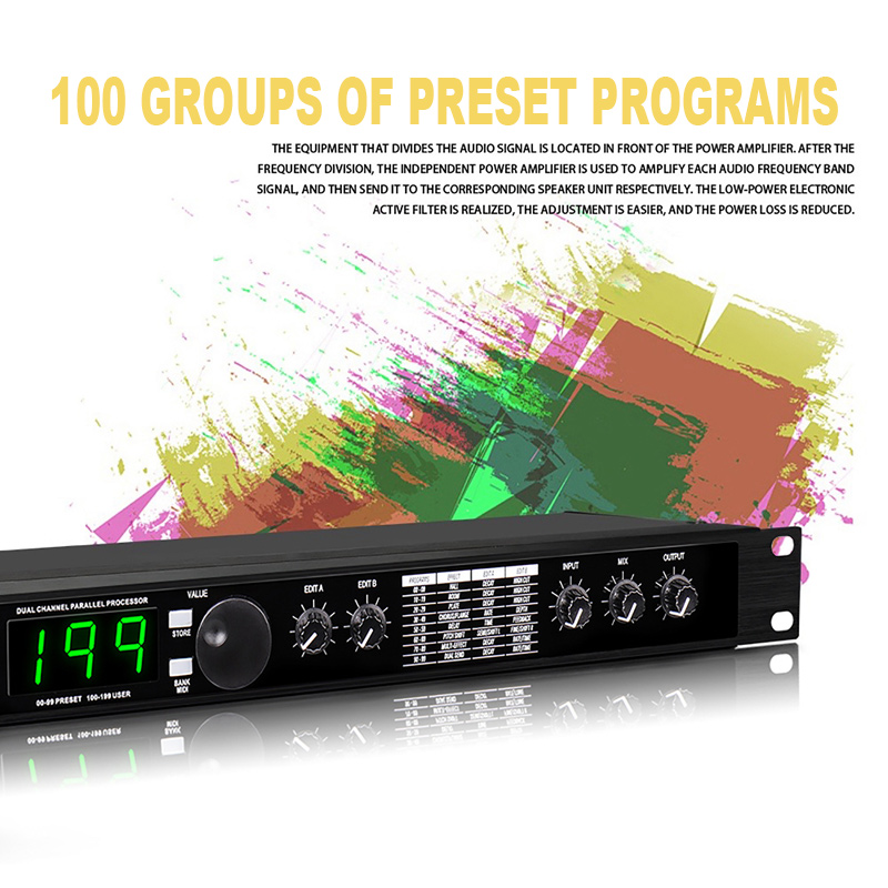 - It delivers superior sound quality that every processor should have: 100 preset and 100 user programs, digital effects (reverb, delay, chorus, etc.) Reverb-Simultaneous effects: 3-Simultaneous MIDI control