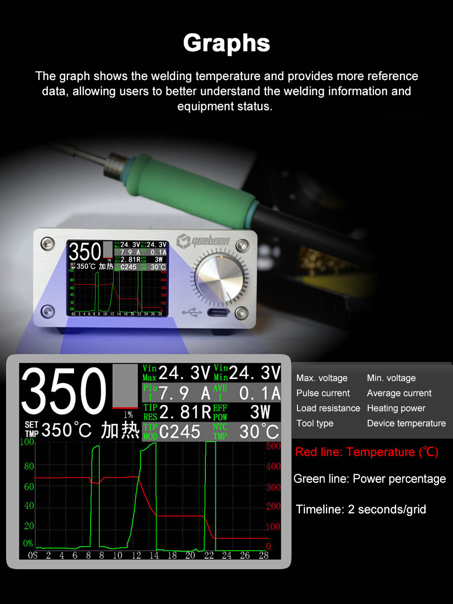 * The graph shows the welding temperature and provides more reference data, allowing users to better understand the welding information and equipment status. The curves make it easy to observe.