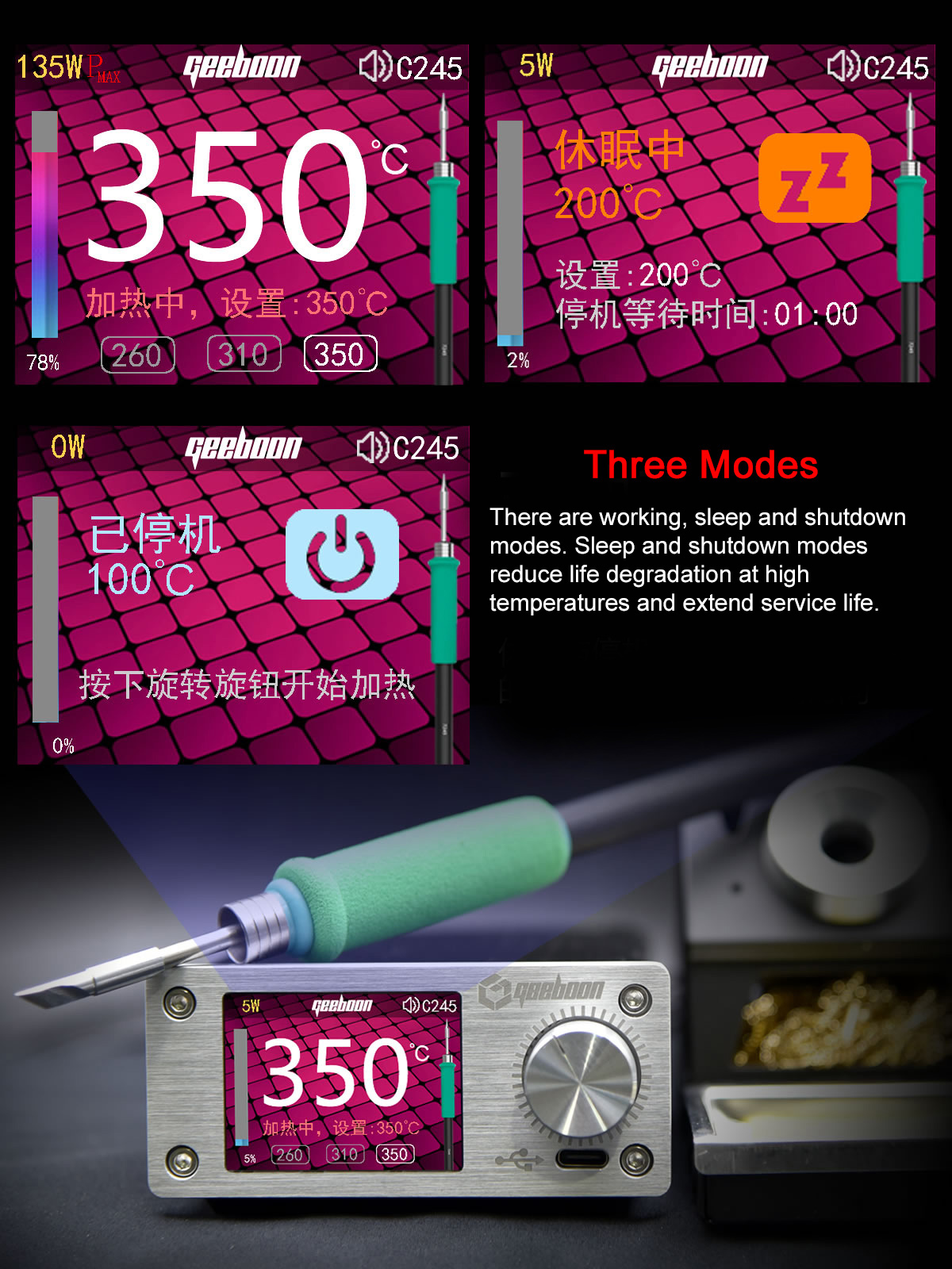 GEEBOON Solder Station Soldering Station Kit (240W TC20A Control Unit + C245-K Soldering Iron Tip)