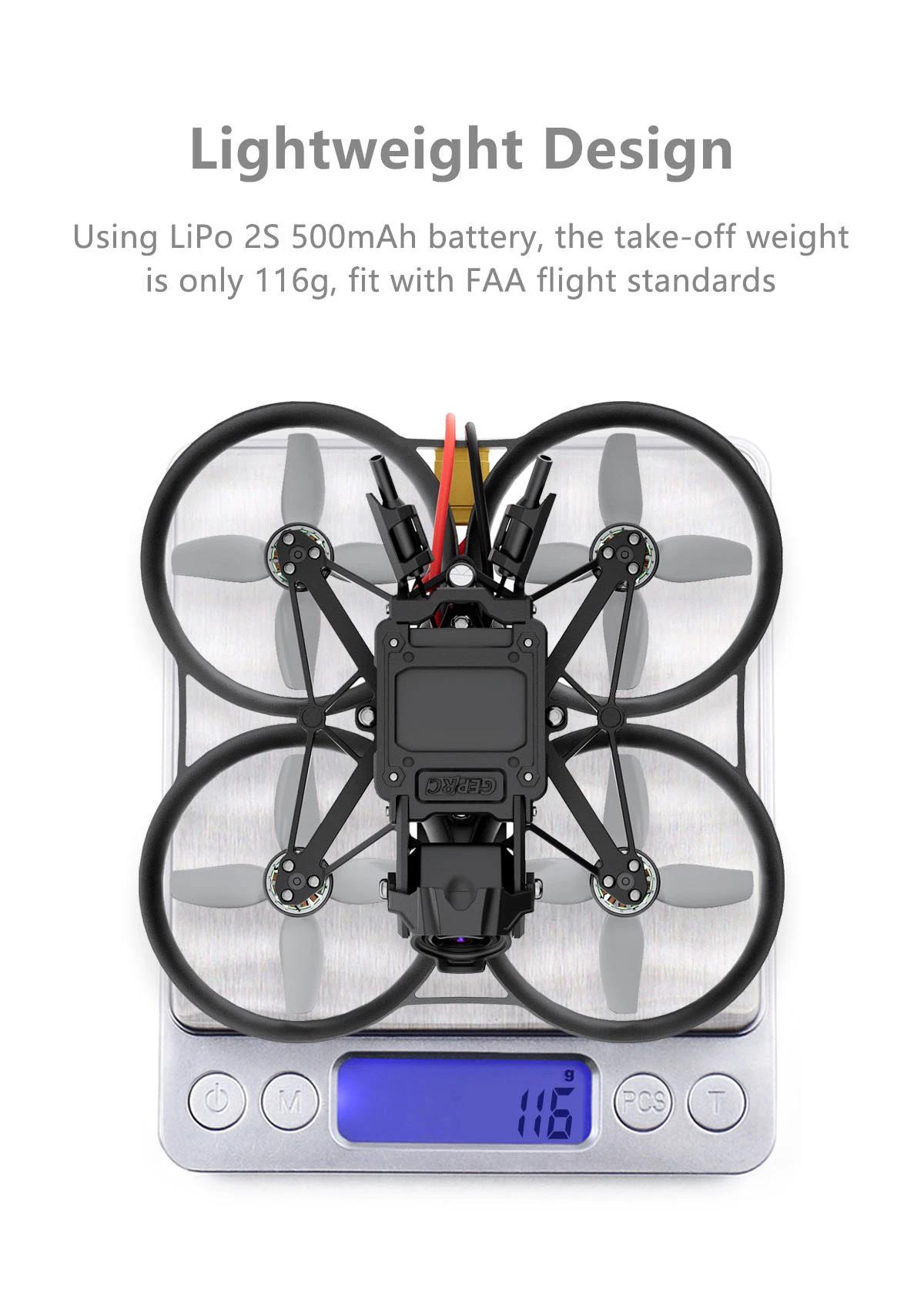 - New SPEEDX2 1102 motor with HQProp DT51mm x 4 propellers can achieve ideal battery life.