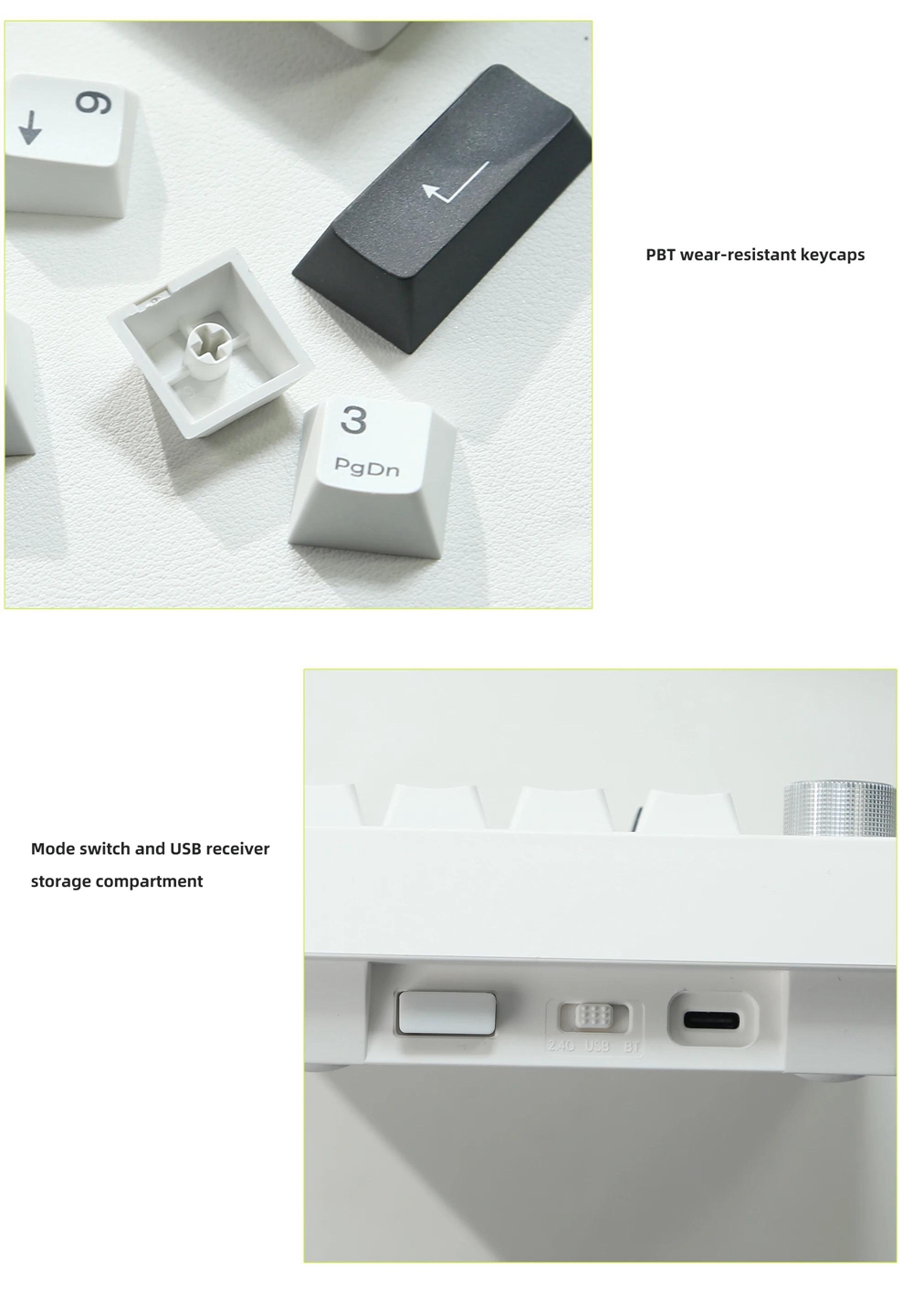 - Support 3 connection methods: wired, 2.4G and Bluetooth.
