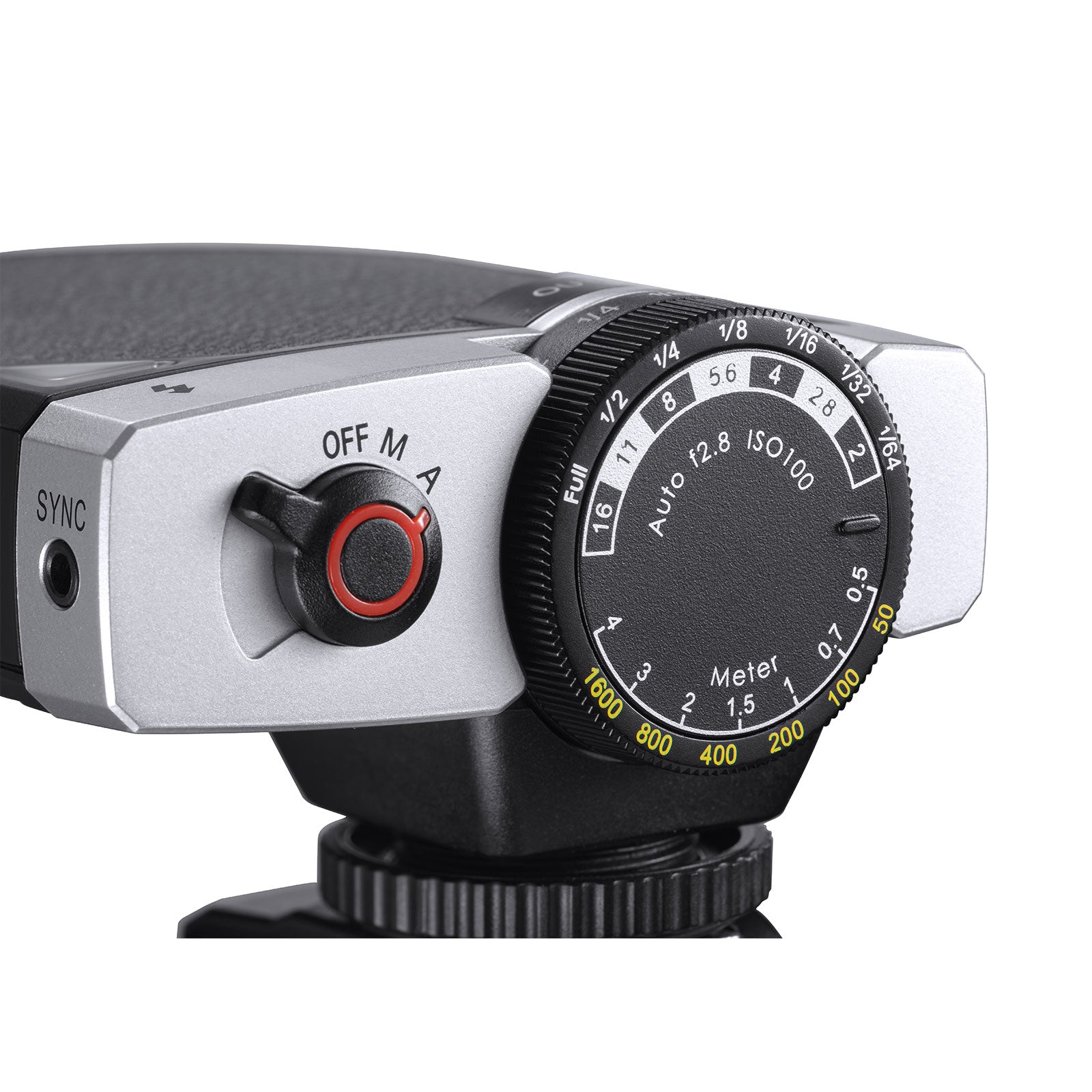 - Panel display: Power: full, 1/2, 1/4, 1/8, 1/16, 1/32, 1/64 Aperture: F2-16; Distance: 0.5m/1.6ft, 0.7m/2.3ft, 1m/3.3ft, 1.5m/4.9ft, 2m/6.6ft, 3m/9.8ft, 4m/13.1ft, Automatic f2.8 IS0100 (default value in A automatic flash mode)
