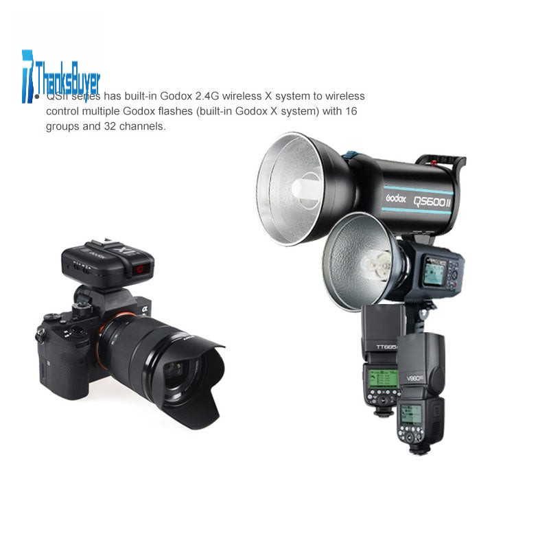 - QSII series has built-in Godox 2.4G wireless X system to wireless control multiple Godox flashes (built-in Godox X system) with 16 groups and 32 channels