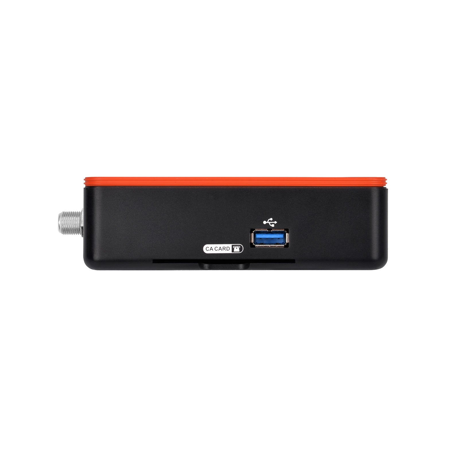 - Rear Panel: ANT IN (EC-type IEC169-2 Female), LNB IN (Frequency Range950MHz to 2150MHz), HD OUT (HDMI2.0, up to 4kx2kp50/60 output), 1*USB2.0+1*USB3.0 HOST, 1*TF card slot, 1*SPDIF, 1*RJ45, 1*CA card slot and Power (DC 12V/1.5A)