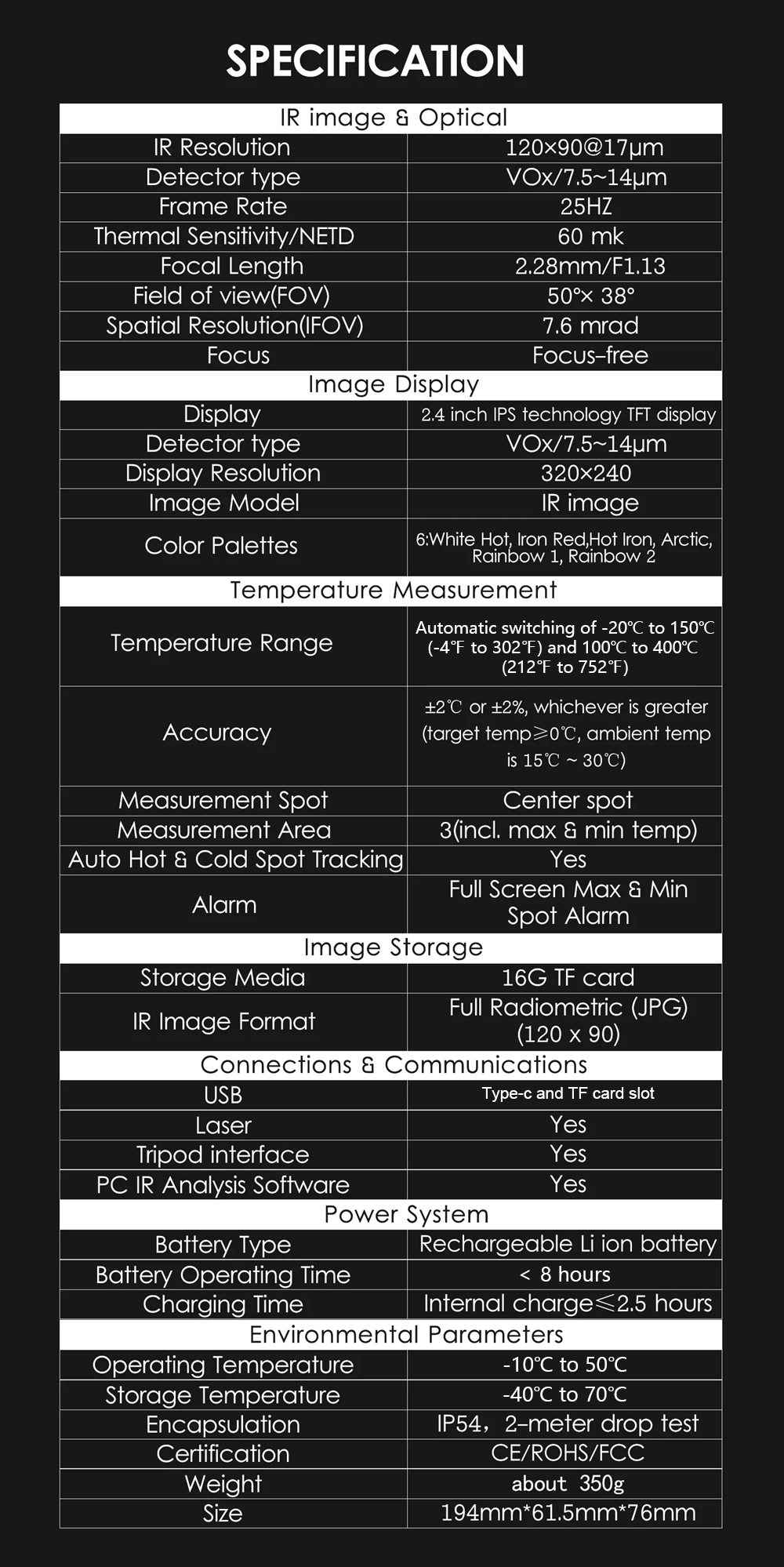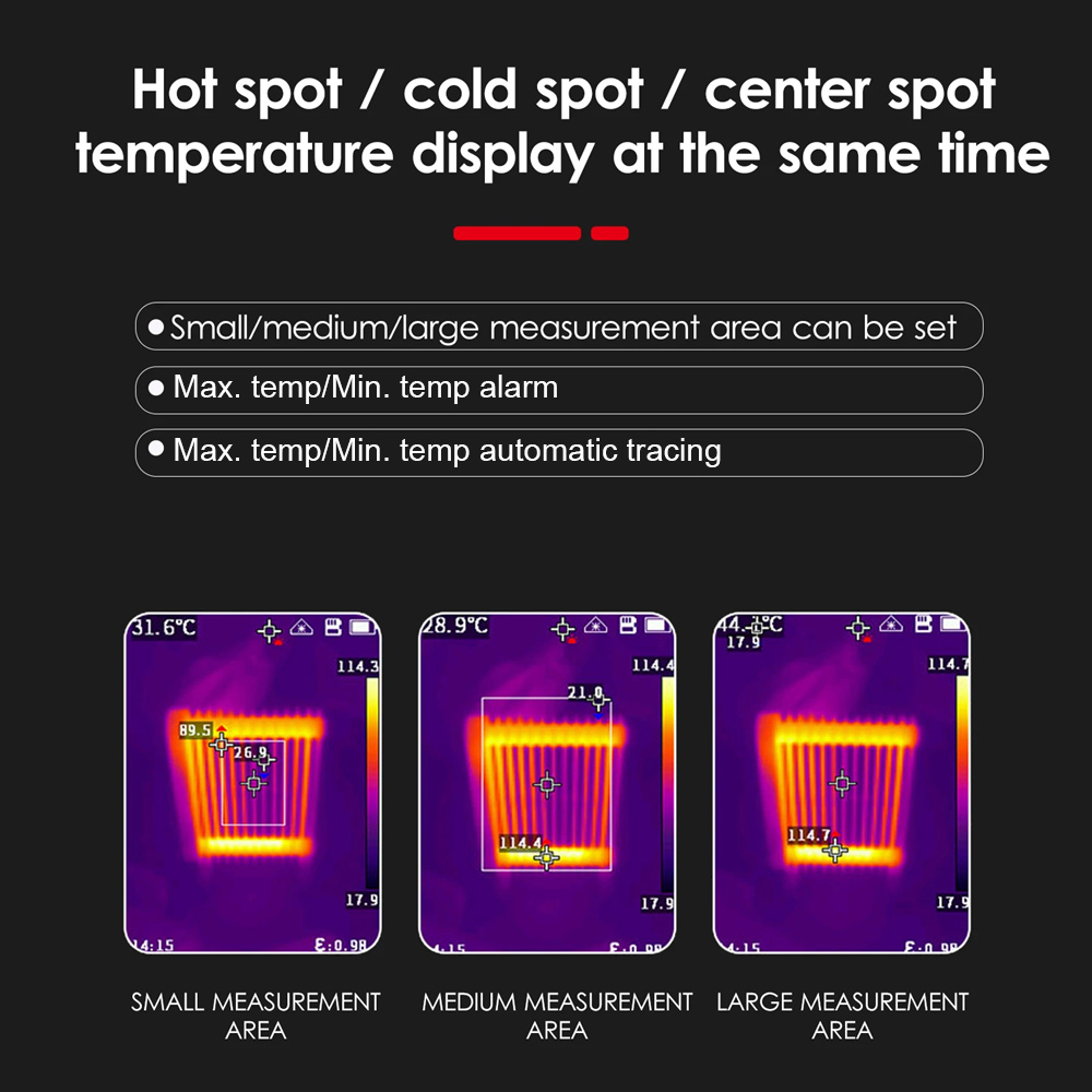 T120 Entry-level Thermal Image Camera is an affordable temperature measuring tool widely used for building diagnostics, HVAC inspections, electrical system inspections, etc. It perfectly overcomes the shortcomings of the single spot infrared thermometers and helps work smarter, safer and faster.