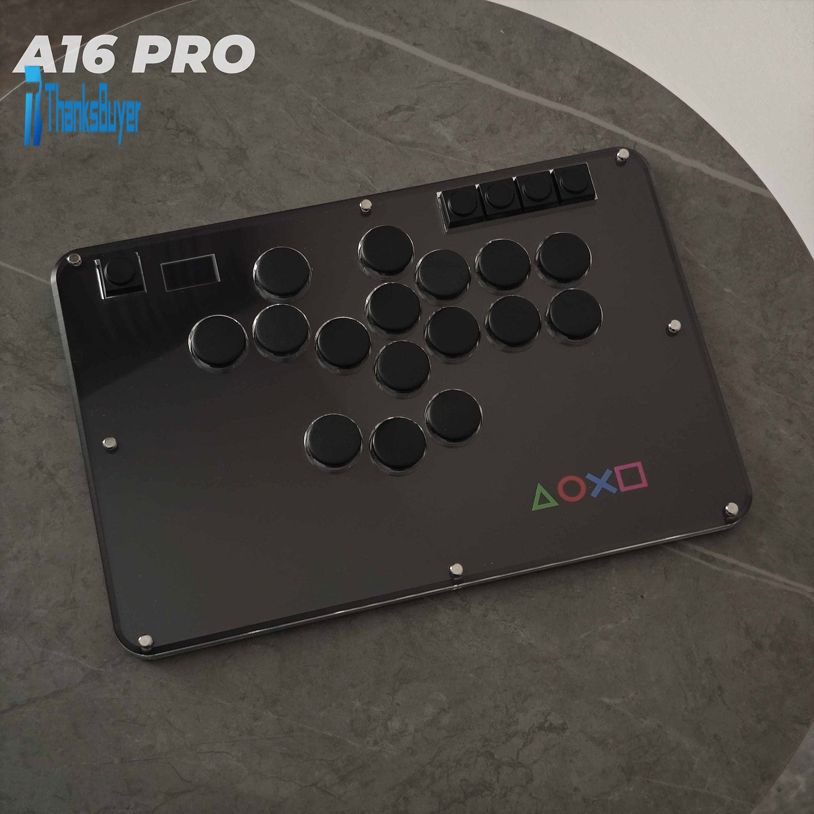 HAMGEEK A16 Pro Hitbox Black 16-Button Arcade Stick Arcade Controller w/ Low Profile Silver Switches