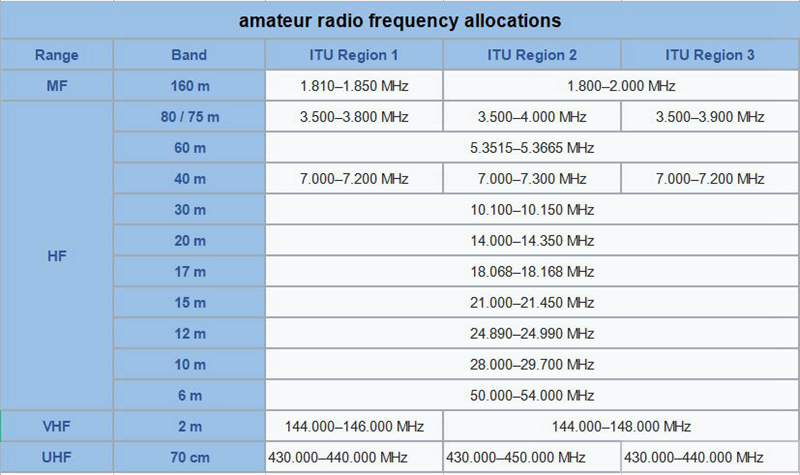 from 160m to 70cm.