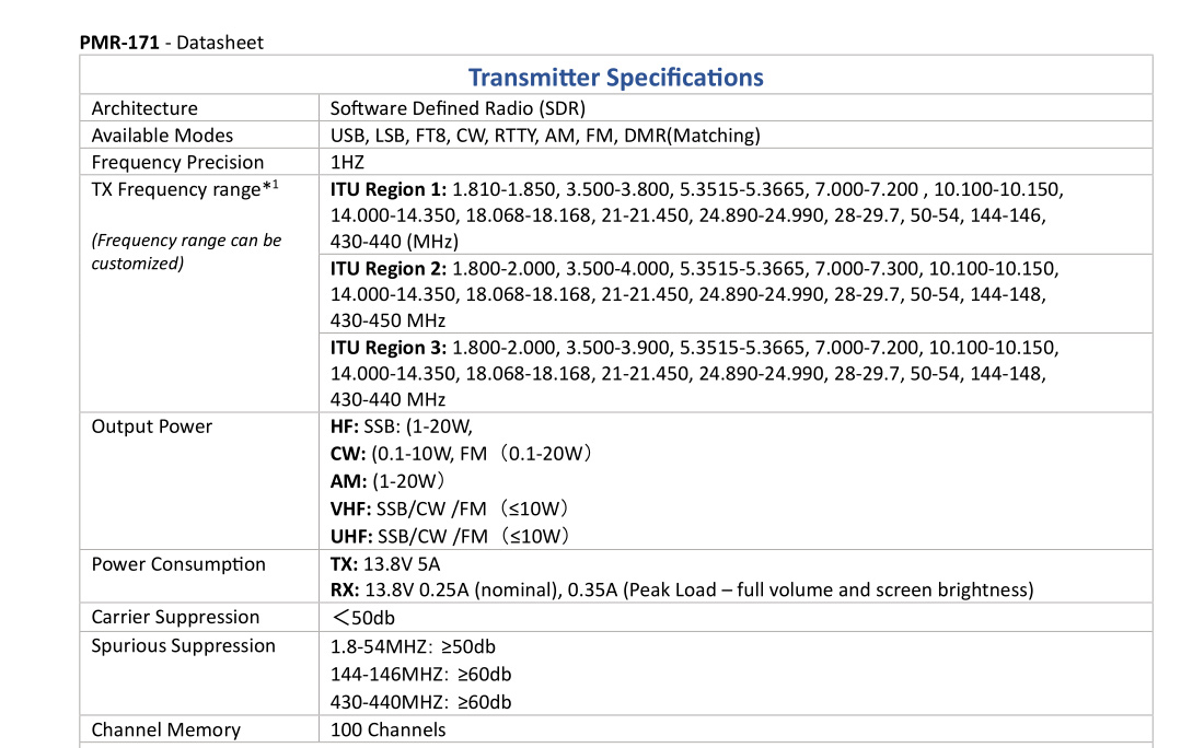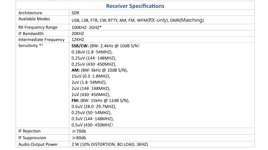 - Software-Defined Radio (SDR) all-band/all-mode: FT8, USB, LSB, CW, RTTY, AM, FM, DMR (optional) and WFM(receive only)