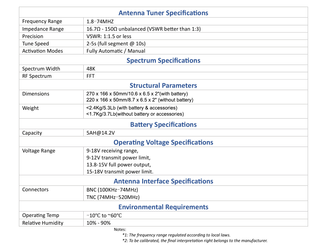 - Built-in 4m to 160m high-speed automatic antenna tuner (ATU)
