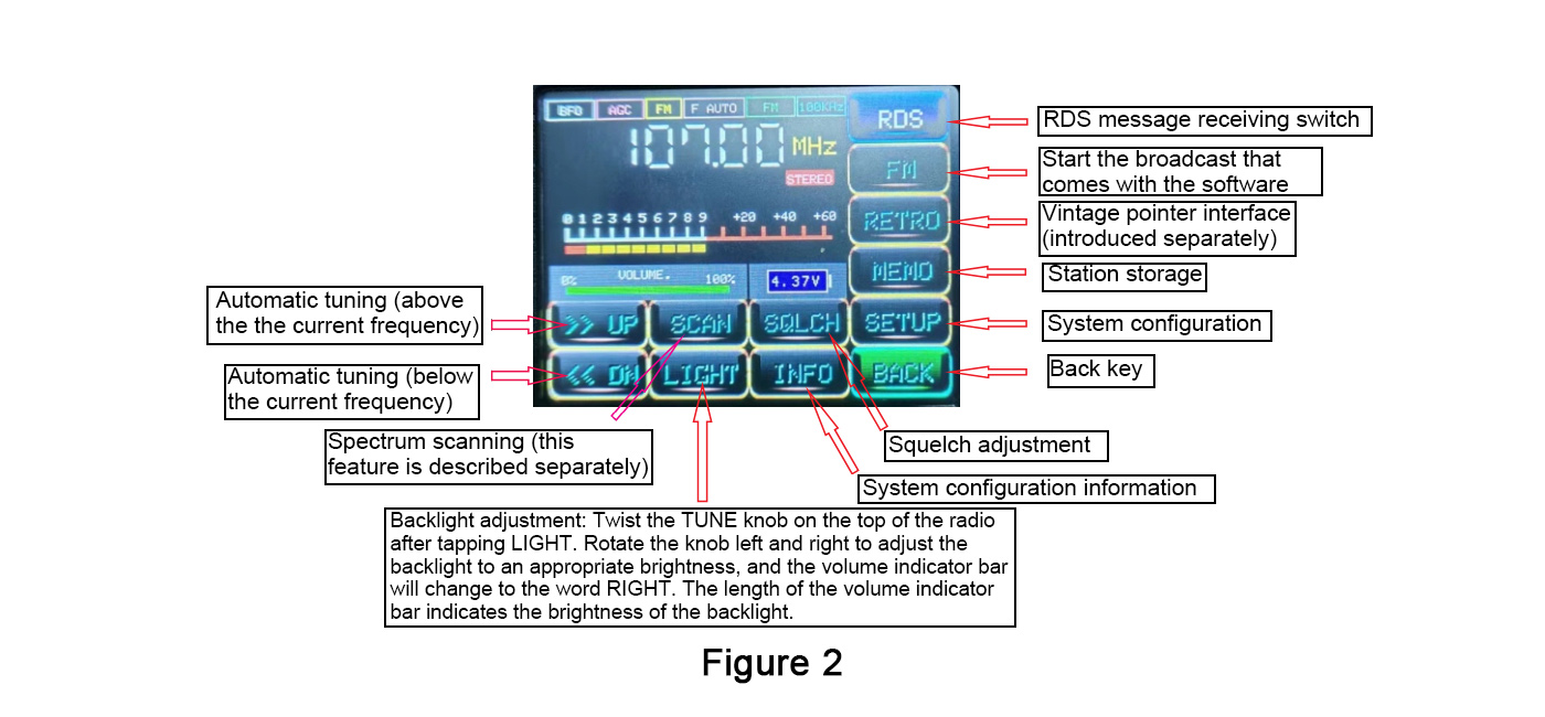 The display of this interface gives the feel of a retro analog radio. The "CITY" function key (made by a Russian source developer) is for the built-in FM radio stations in major Russian cities and the main MW and SW frequencies. With the exception of Russia, this function button has no practical meaning, but it does not affect the listening effect. Twist the top TUNE knob to listen to your local FM radio.