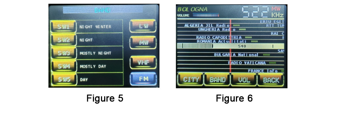 Click the "BAND" button, the screen will display 5 preset SW, LW, MW and FM stations, and display them in traditional pointer mode as shown in the figure below.
