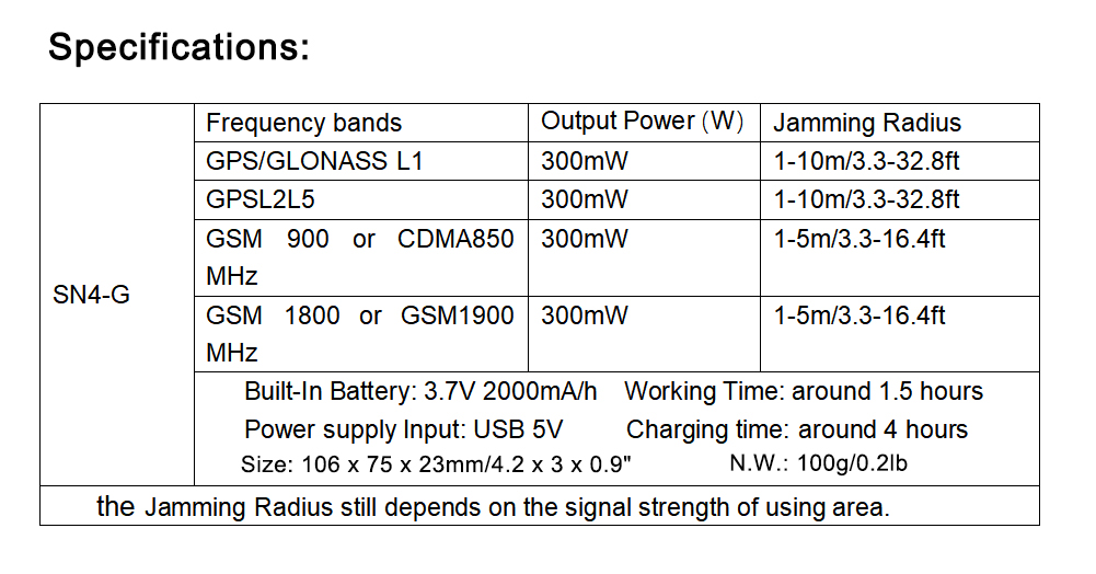 HamGeek SN4-G, the latest mini GPS GSM signal blocker, comes with 4 hidden antennas. It can block GPS/GLONASS L1+L2L5+GSM900/1800 and CDMA850/1900. With pocket size, it looks like a mobile phone power bank. With built-in 2000mAH Ni-Mh battery, it lasts for around 1.5 hours.