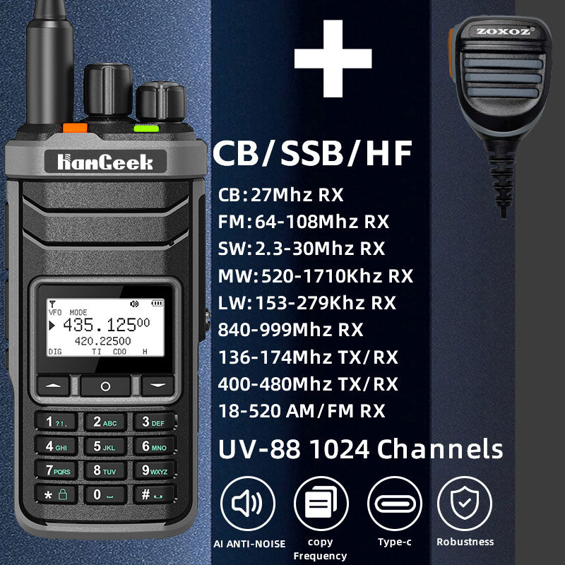 HamGeek UV-88 1024 Channels + 2 VFO Channels Walkie Talkie (Standard Version + Hand Microphone)