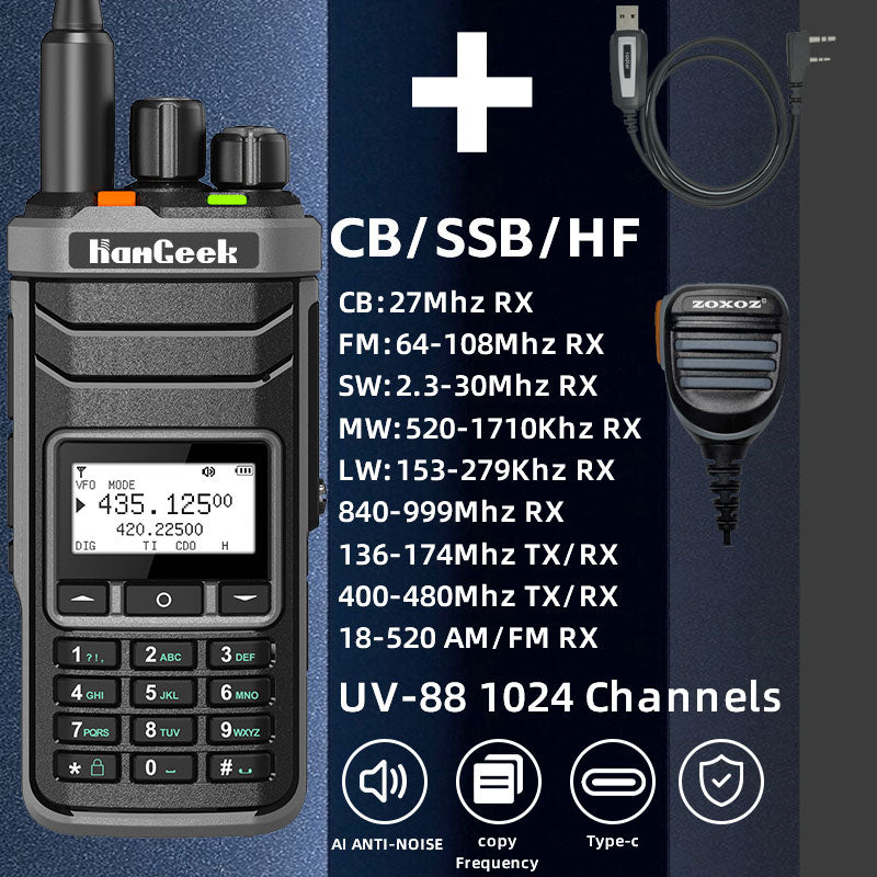HamGeek UV-88 1024 Channels + 2 VFO Channels Walkie Talkie (Standard Version + Programming Cable + Hand Mic)