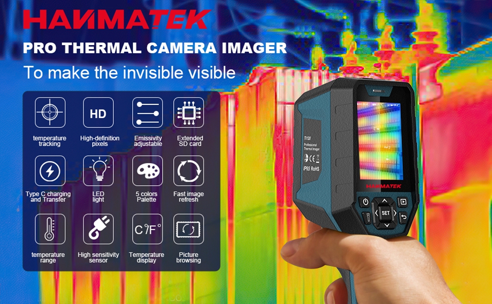 HANMATEK TI120 Thermal Imager with 5 Colors Scale Palettes for Temperature Tracking Thermal Imager Camera