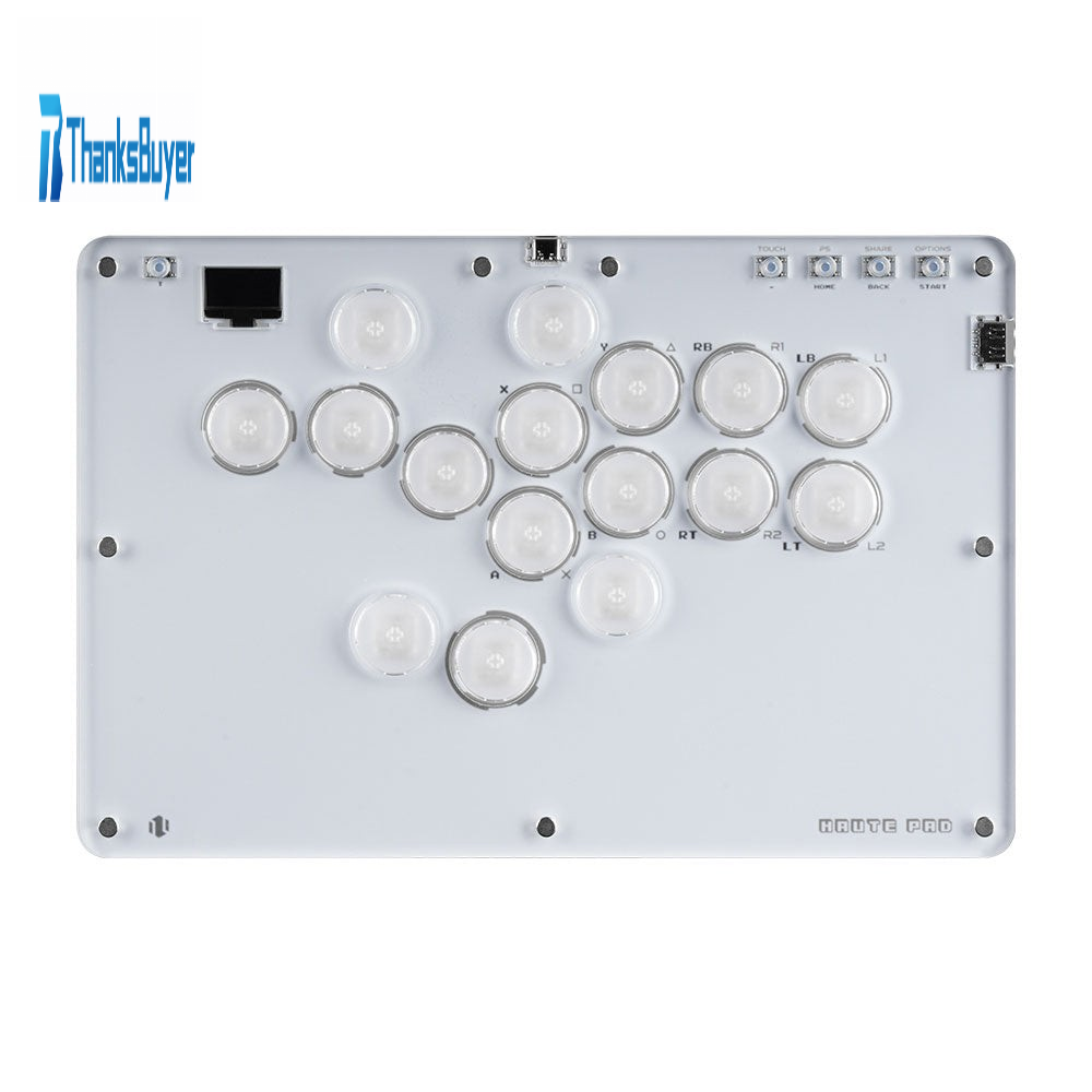 HAUTE PAD T16 Pro V2 White 16-Button Arcade Stick w/ Crystal Low Profile Switches & Chamfered Edges