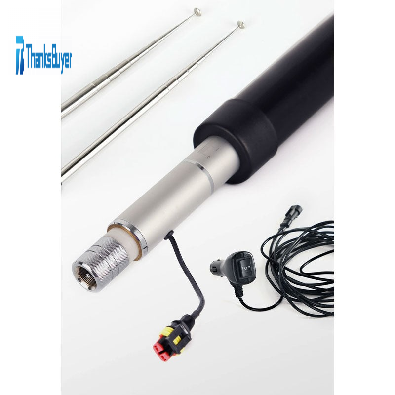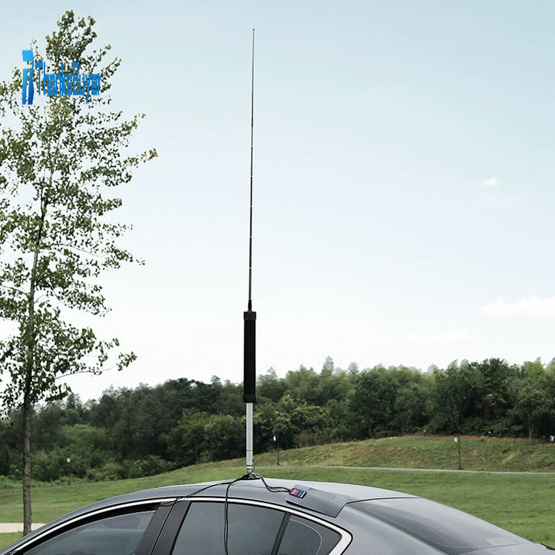 - This antenna is powered by a car cigarette lighter interface, and the top is a portable design with a lever antenna. Use a controller to adjust the frequency scale on the inductance coil to obtain the ideal standing wave ratio.