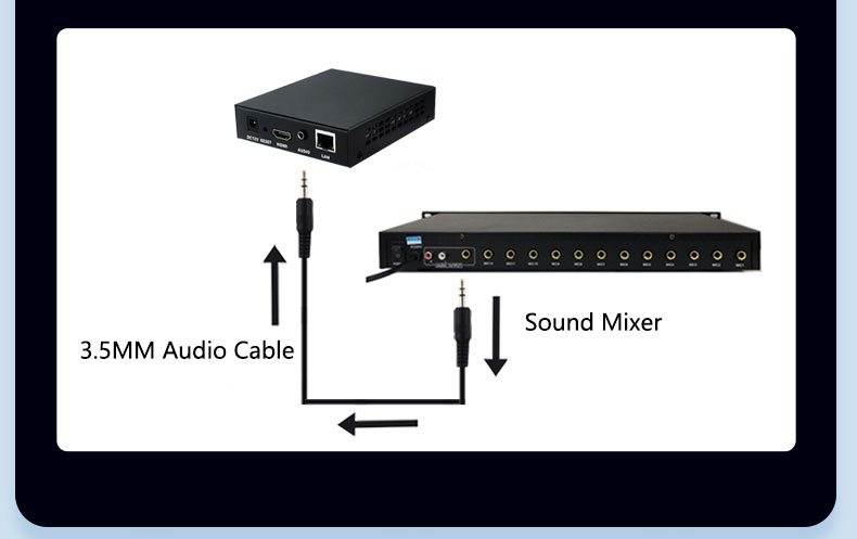 - Can connect to 3.5mm external audio or use HDMI audio. Audio coding method: AAC/AAC+/AAC++/MP3/MP2/AC3. Channel: Stereo/left channel/right channel. For ONVIF equipment: RTSP stream compatible with G711A encoding
