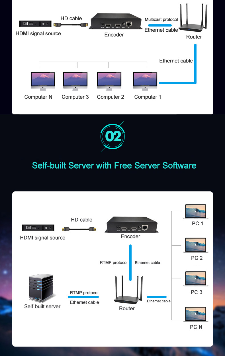 - Streaming: Support for RTMP/ RTSP /HTTP TS/HTTP FLV/HLS/UDP multicast/RTP multicast
