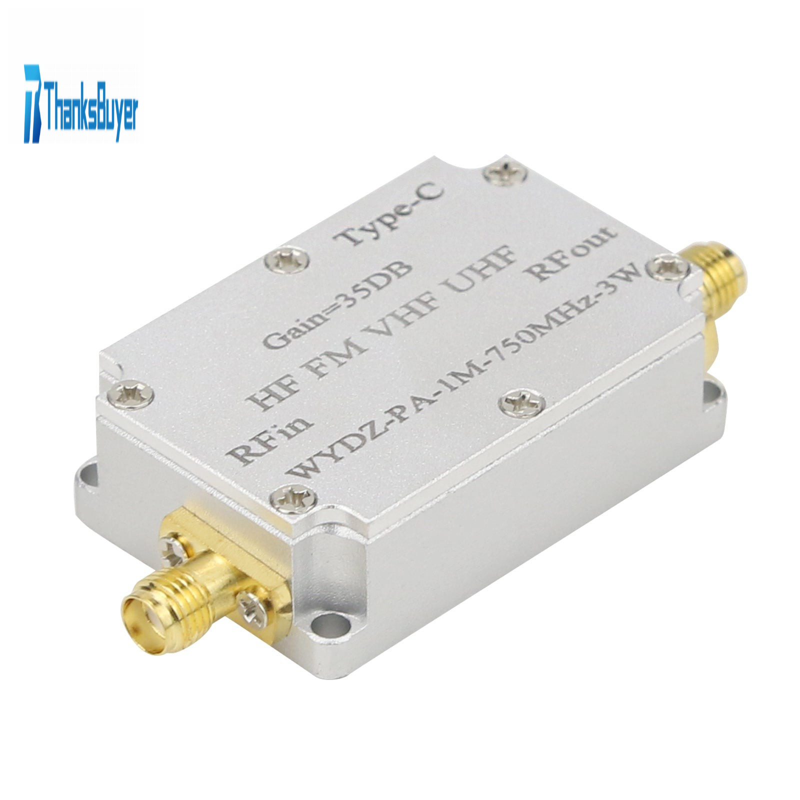 HF FM VHF UHF Broadband RF Power Amplifier FM Transmitter Amplifier Shell 35DB WYDZ-PA-1M-750MHz-3W