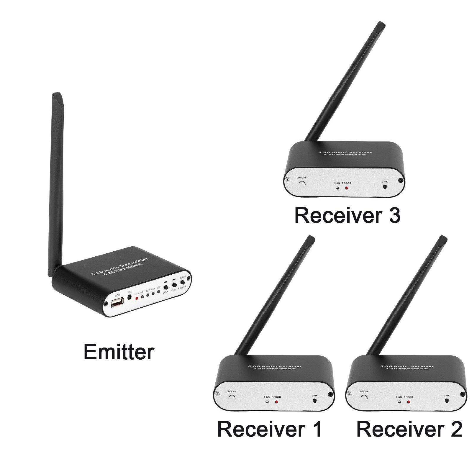 HiFi 5.8GHz RF Wireless Audio Transceiver Audio Extender 30-Meter Transmission (1 Transmitter + 3 Receivers)