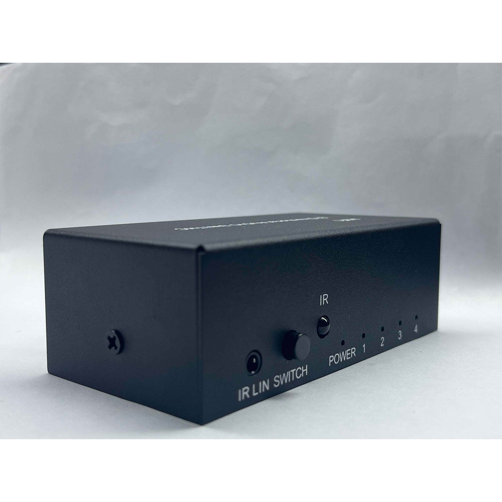 - This switch is a lossless audio switch that uses relay switching and can switch between four in one out or one in four out modes. It supports manual and remote switching, and has a TYPE-C power supply with a 5V input of 500mA.